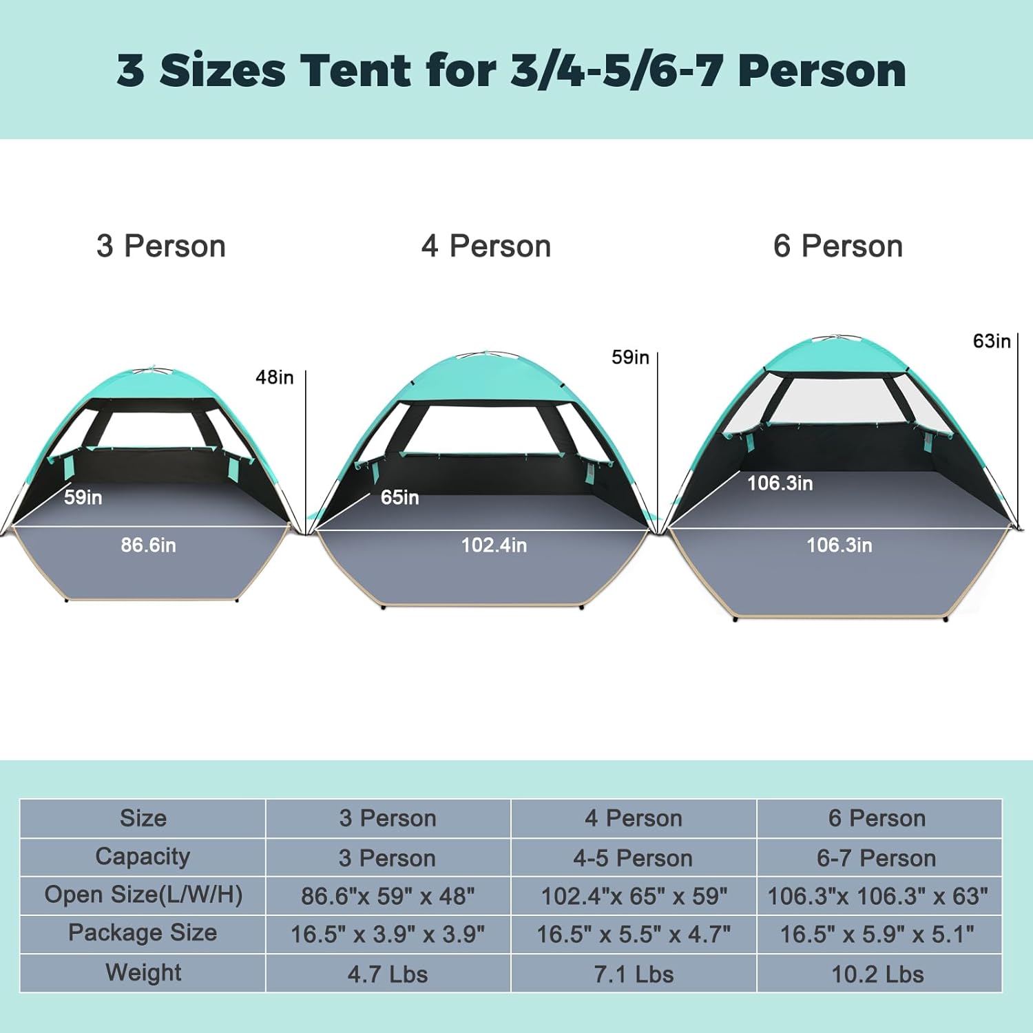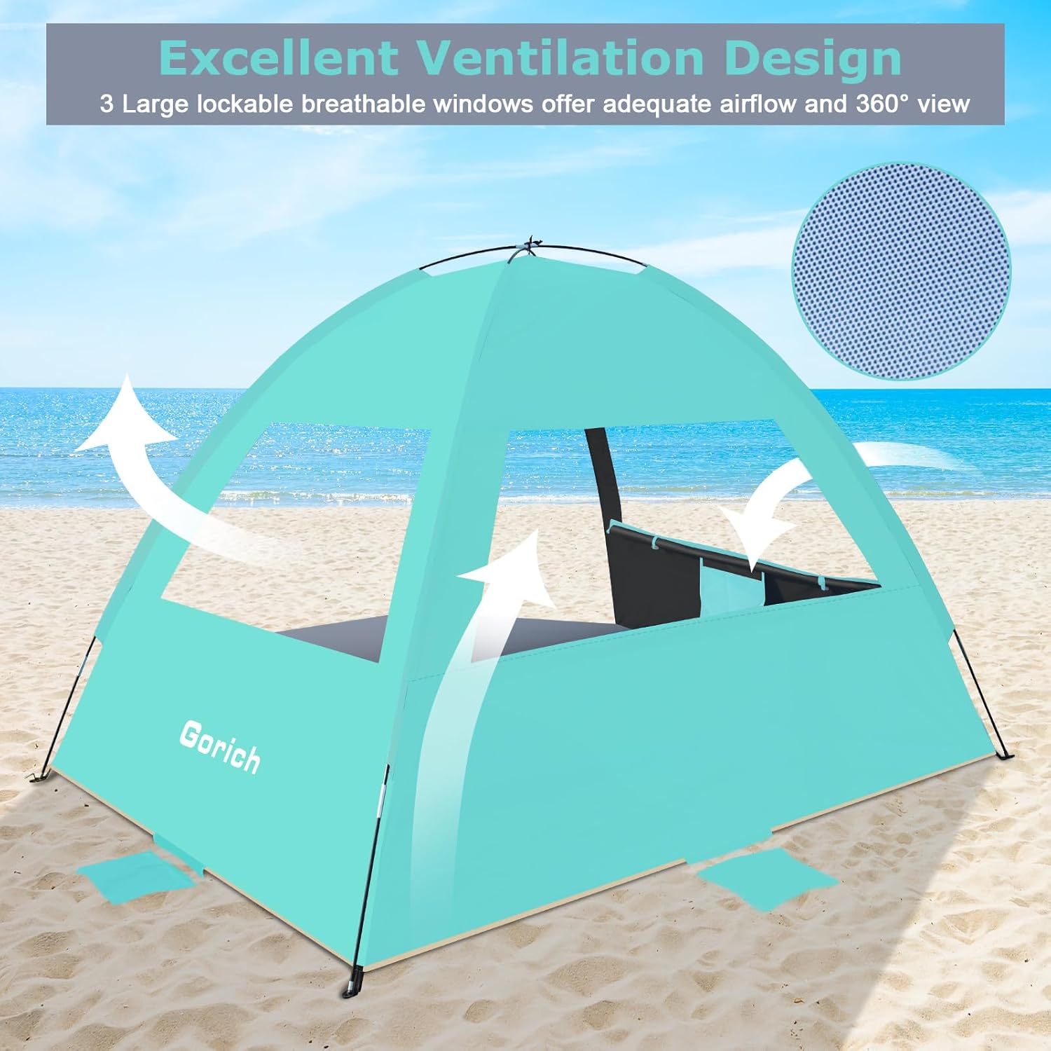 Gorich Beach Tent Sun Shelter for 3/4-5/6-7/8-10 Person with UPF 50+ UV Protection, Lightweight & Easy Setup Beach Shade Canopy, Portable Beach Shade Tent Beach Cabana