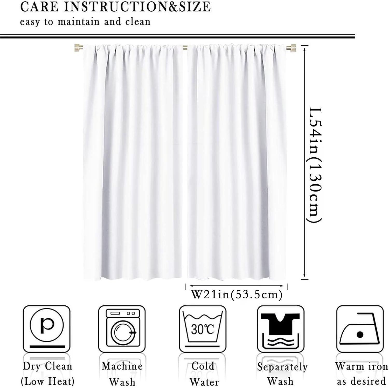 - 【Easy Care 】Machine washable in gentle cycle and cold water, do not bleach.White creases in curtains can be removed by ironing with an iron.