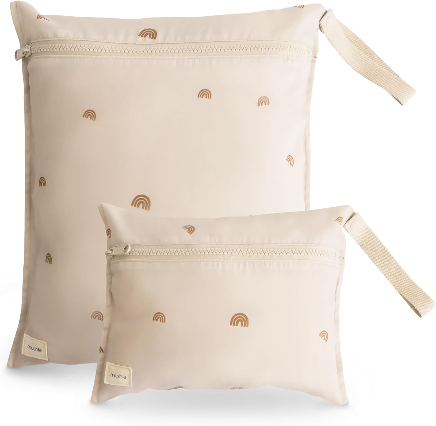 mushie Water Resistant Wet Bags | Large & Small Reusable Storage Bag for Baby Items and Travel | Zippered Pockets with Handle | Machine Washable, Set of 2 (Rainbows)