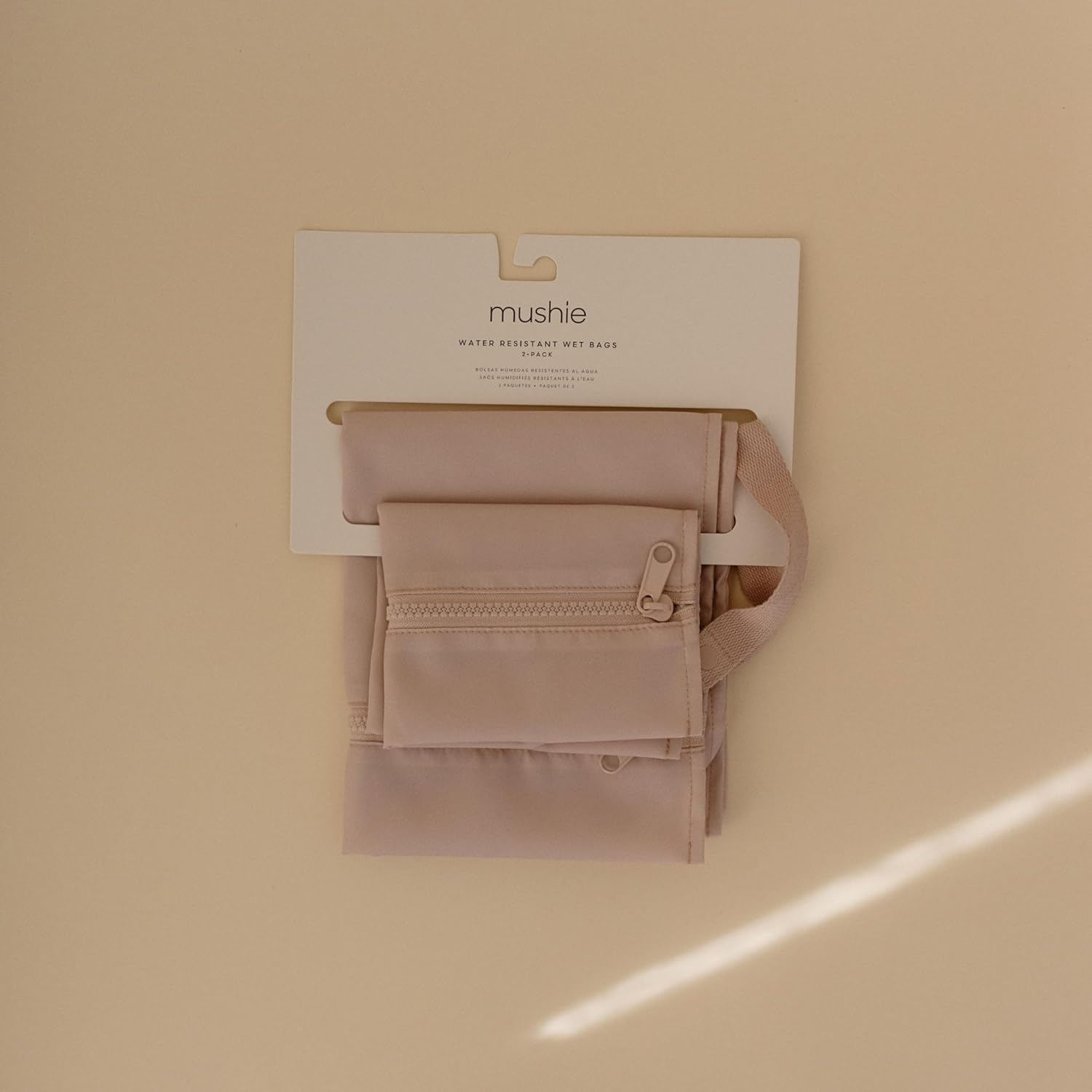 mushie Water Resistant Wet Bags | Large & Small Reusable Storage Bag for Baby Items and Travel | Zippered Pockets with Handle | Machine Washable, Set of 2 (Blush)