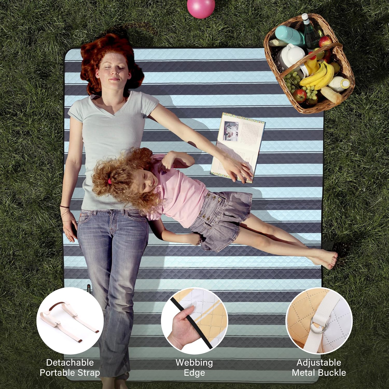 - 【Large size, Portable & Lightweight】- Our Picnic blankets unfoldedsize is 80''x 60''. It’s large enough to fit for 4-6 adults for siting, giving your children and pets a large area to play.