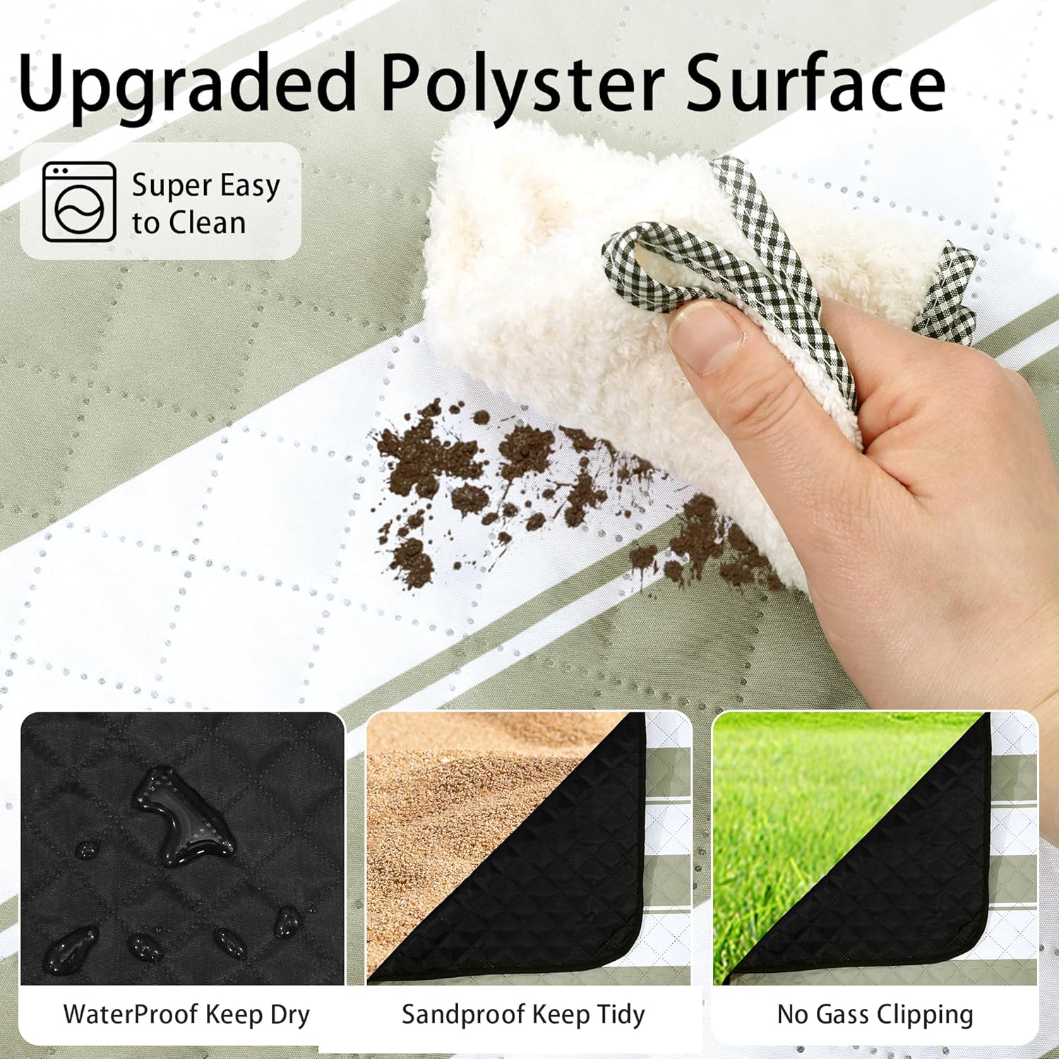 - 【Waterproof & Machine Washable】Outdoor picnic blanket is super easy to clean due to its durable and waterproof backing, easily shake & wipe off dirt, mud, wet grass, and beach sand. And you could put it into washing machine to save your time and free both hands.