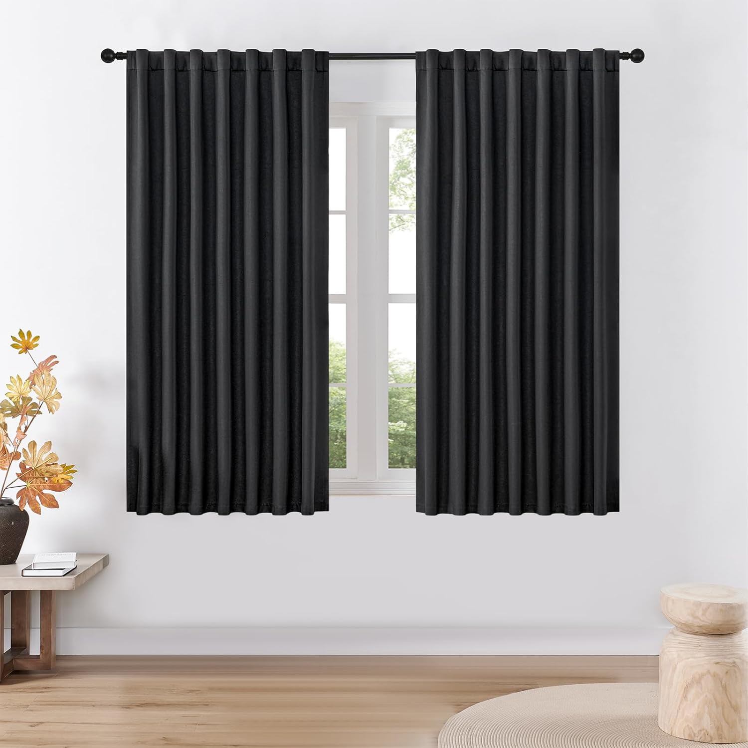 Joydeco Faux Linen Blackout Curtains for Bedroom,Black Blackout Curtains 72 inches Long,100% Blackout Solid Thermal Insulated Window Drapes Luxury Decor for Living Room(W52xL72 Inch,Black)