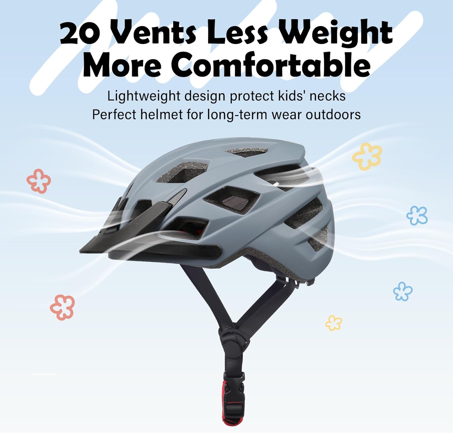 - Lightweight : Our kids bike helmet is ultra light just 255 g/0.55lb with 20 vents for less sweat and a more comfortable cycling even on hot summer days
