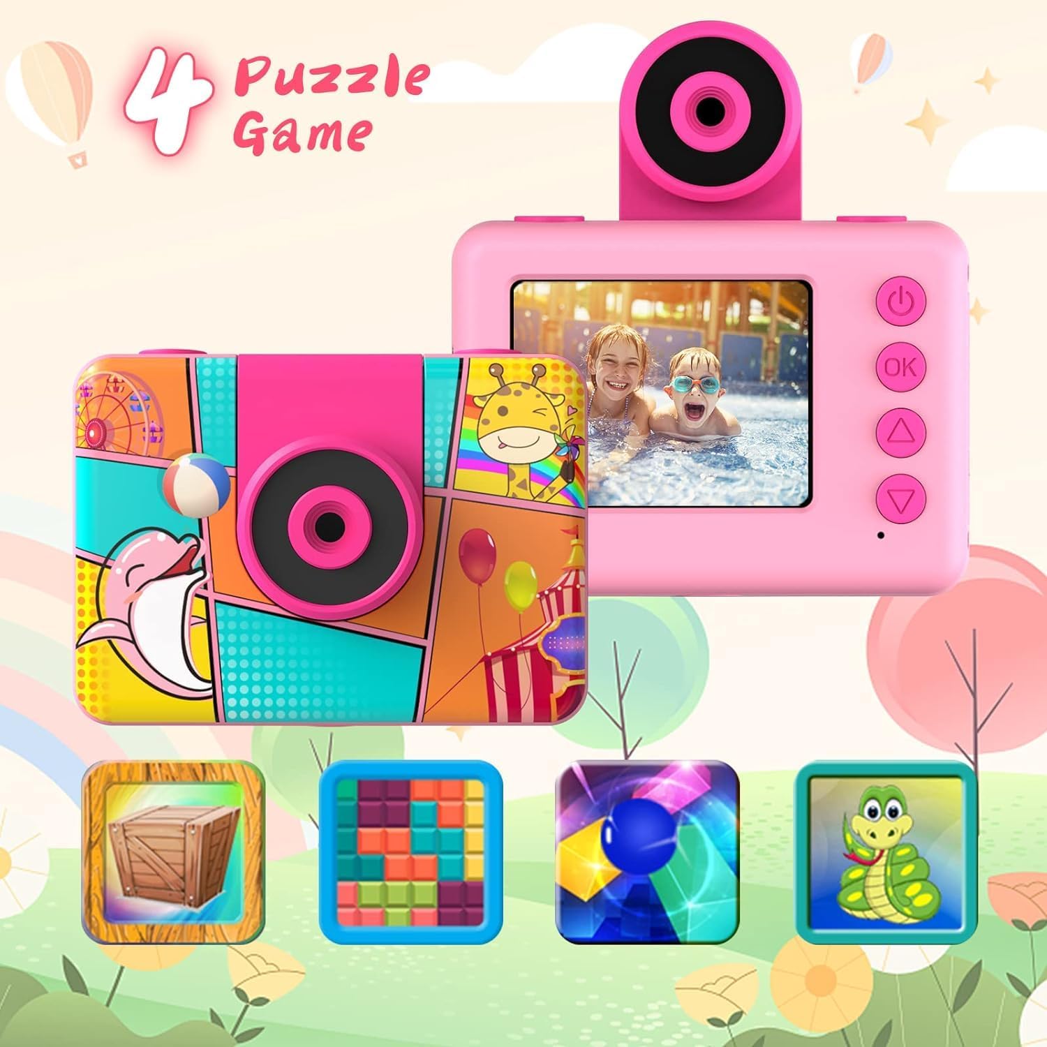 Kids Camera, Waterproof Kids Digital Camera, Children Selfie Camera with 180°Flip Len, 20MP 1080P Sports Action Toy Underwater Camera for Pool Helmet, Birthday Gifts for Boys Girls Age 3-12