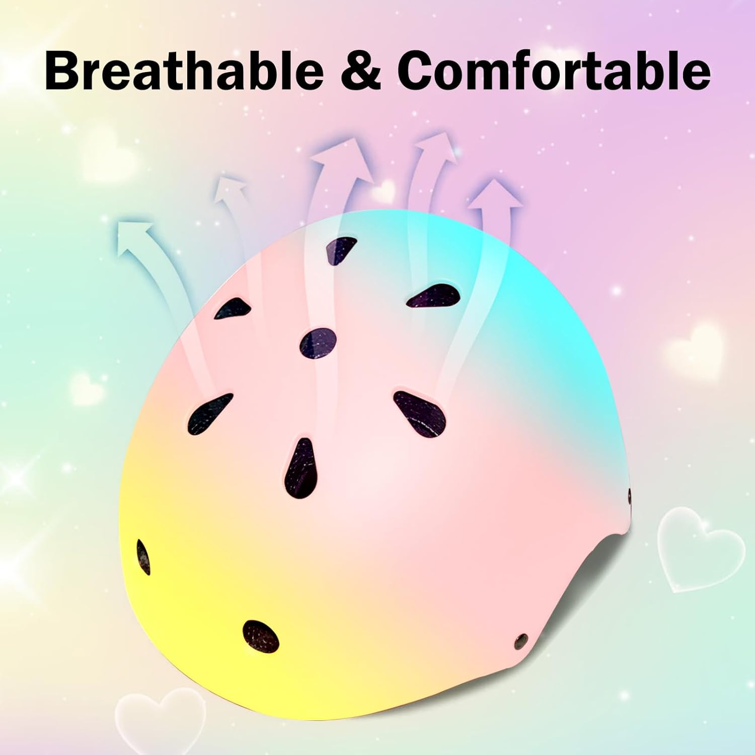 - 🌈 【Multi-sport Helmet】: Our girls bike helmet are specially designed to meet safety standards for multiple sports activities, like bike, skateboarding, scooter, inline skating.