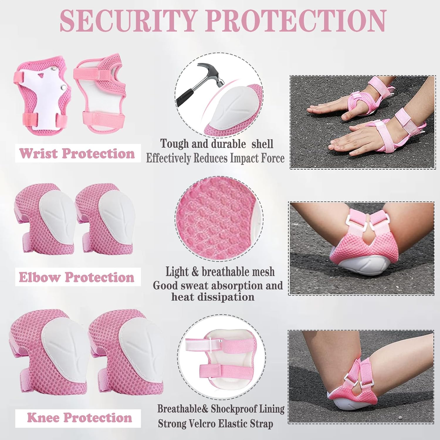 - 【Suitable for Multiple Sports】ours The kids helmet and knee elbow pads with wirst guards are designed for kids sports saftey protection especially for any outdoor activities for many outdoor sports such as skating, skateboard, scooters roller, skating balance bike helmet can provide professional protection to your children, our kids away from hurt when they enjoy the joy of sports.