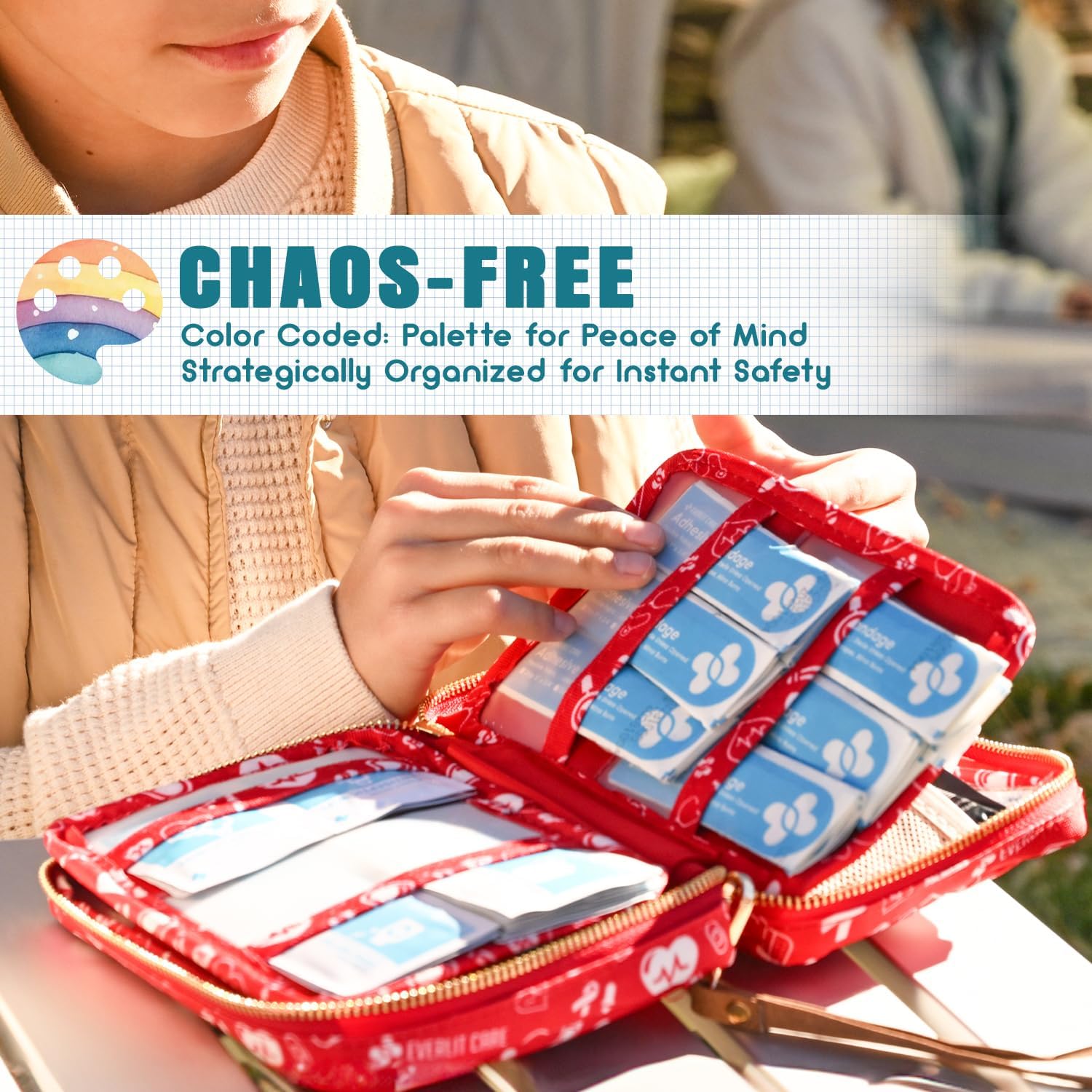 EVERLIT Care Rescue Pack | Family-Friendly First Aid Kit for Kids with 200 Pcs Medical Supplies | Travel-Friendly Compact Storage Bag for Home, Car, Travel, Camping, Adventure (Splatter)
