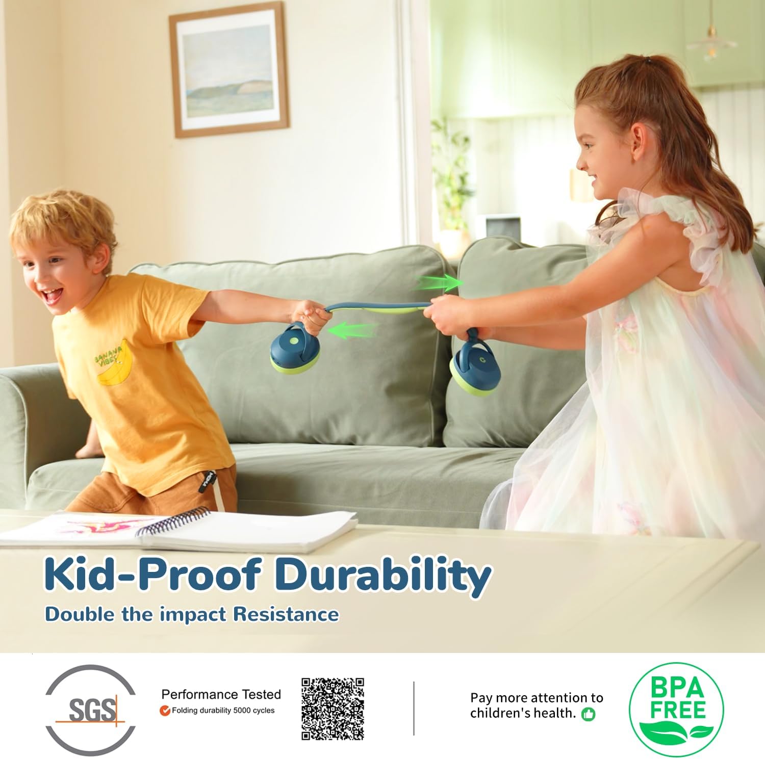 - [Strong Durability]:These Kids Noise Cancelling Headphones are crafted from enhanced materials that are free of BPA and PVC, offers over twice the wear resistance, impact resistance, and lifespan of traditional materials and defies drops and bends. Plus, the new reinforced internal structure makes the button last longer and eliminates the issue of sound loss on one side.