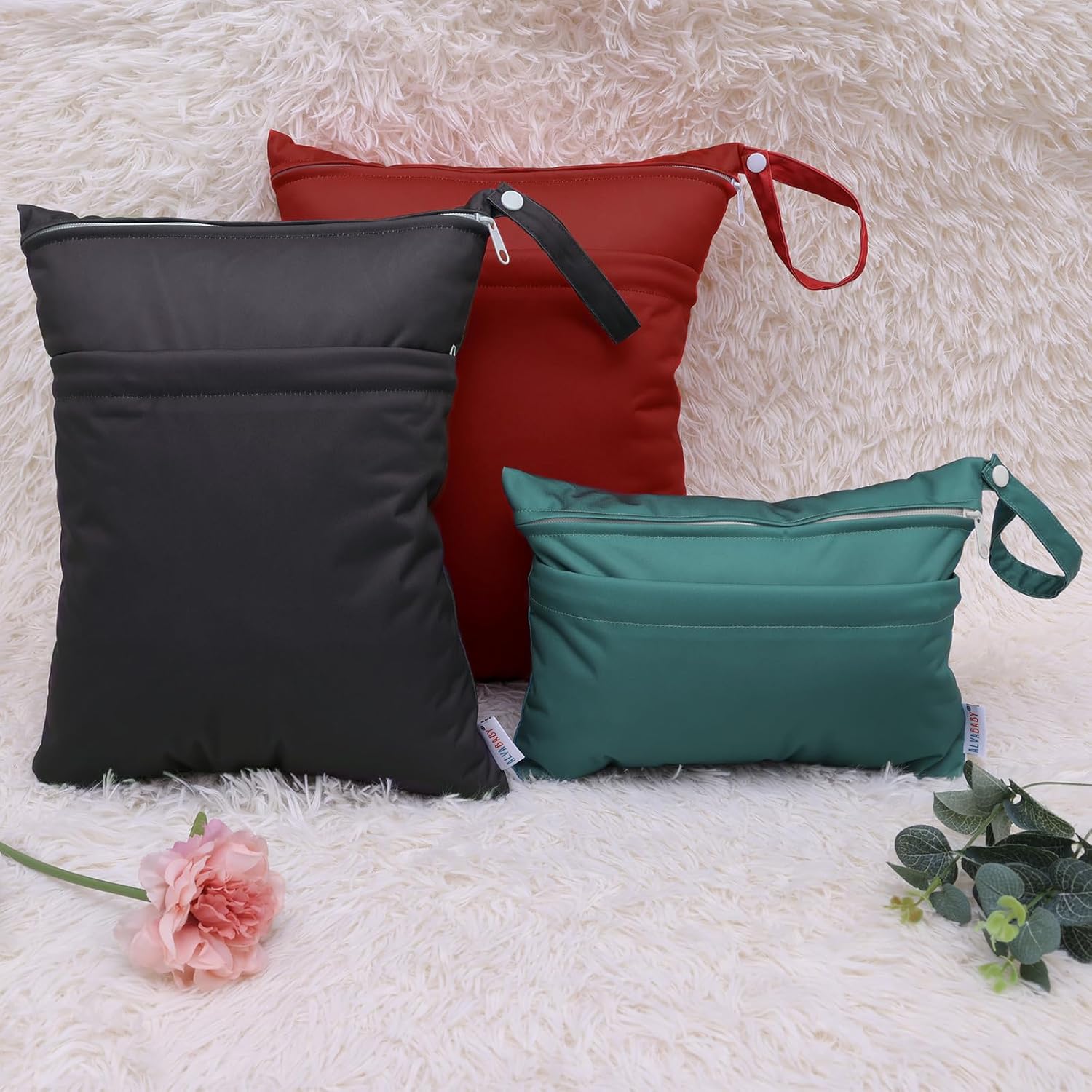 ALVABABY 3 Cloth Diaper Wet Dry Bags Waterproof Reusable with Two Zippered Pockets Travel Beach Pool Daycare Soiled Baby Items Yoga Gym Bag for Swimsuits or Wet Clothes Small medium Large 3L-SML02