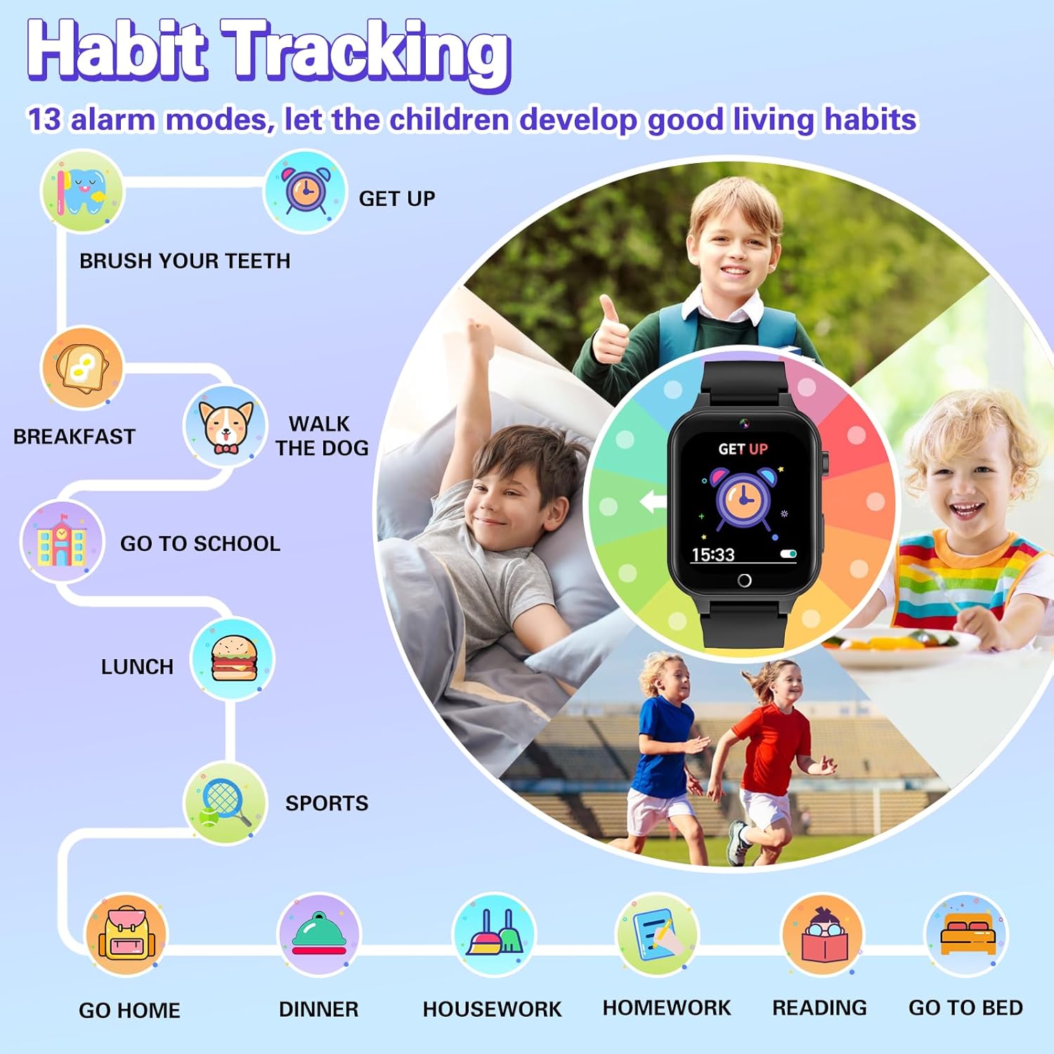 - 【Upgrade Kids Watch】As the upgrade kids smart watch with 2*screen protector, introduces the habit tracking function, stories, and learn card that traditional watches don't have, cultivating children's good habits and imagination. And with playable 26 games to choose from kids. These are suitable for children of multiple ages. That can effectively exercise kids brain and logical thinking ability. It is a perfect gift for 4-12 year old boys and girls.