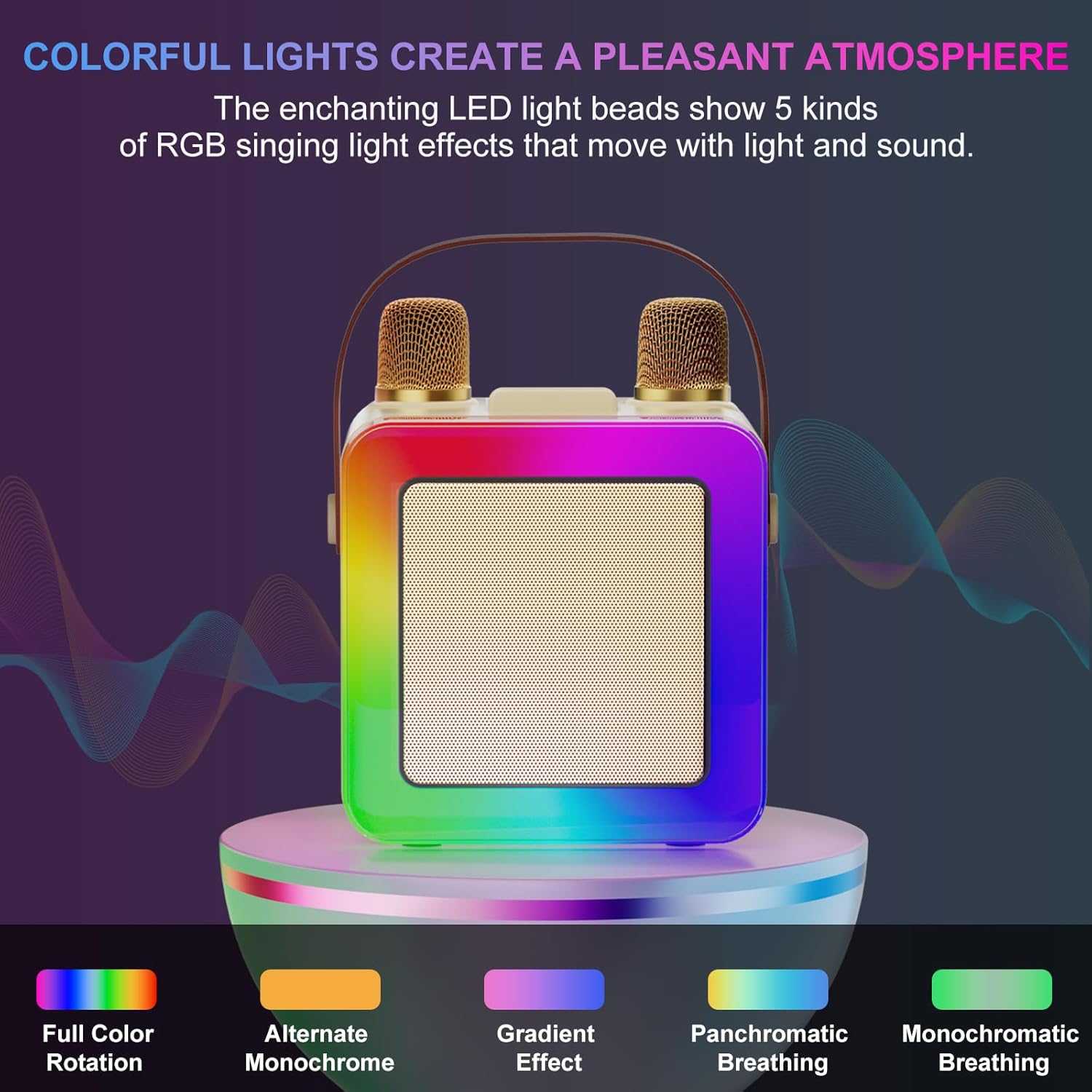Karaoke Machine for Kids Adults, Portable Bluetooth Karaoke Speaker with 2 Wireless Microphones, Karaoke System with Mics Storage Hole and Lights, Birthday Gifts for Girls Boys Family Home Party