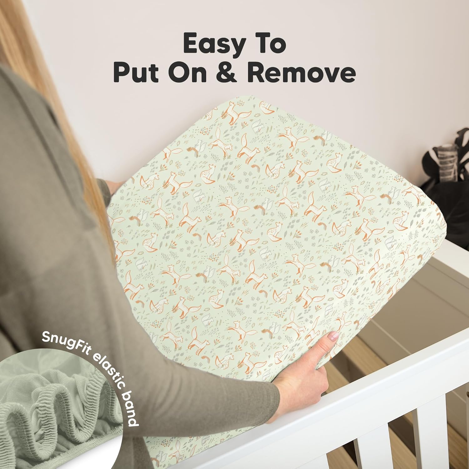 KeaBabies 2-Pack Organic Crib Sheets for Boys, Girls - 52x28 Fitted Crib Mattress Sheet Neutral, Breathable Jersey Cotton Cover for Baby Bed, Toddler Mattress, Soft & Cute Prints (Foxtrot)
