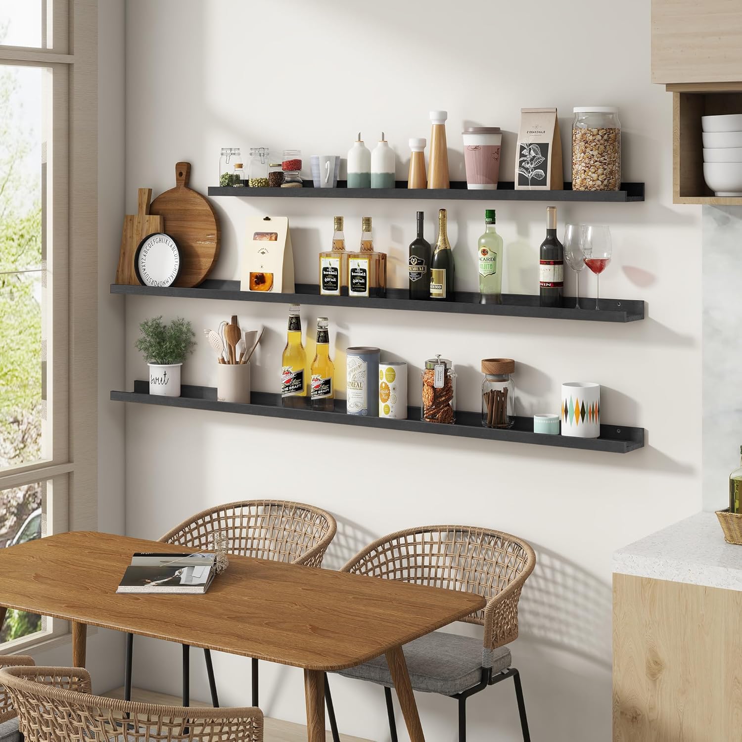 - Multi-scene & Functional: The wall-mounted shelves are designed for decoration and storage, utilizing and decorating any space in your home. Used as shelf decor to show your collection, books, or prize, the hanging shelves are perfect for displaying your photo frame, small plants, model, or audio in your living room, office, study. And can also use as over the toilet storage shelf in the bathroom to hold toiletries or used as a kitchen shelf to store condiments.