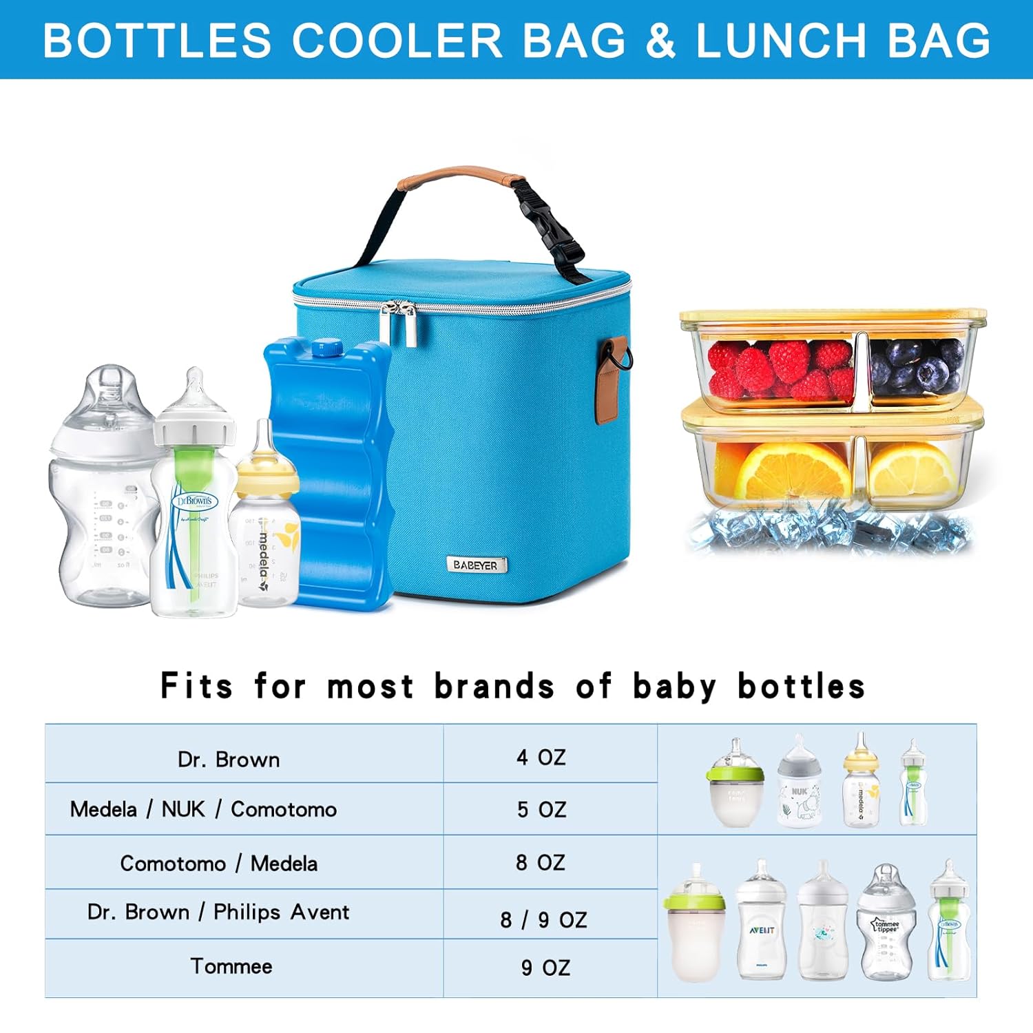 Breastmilk Cooler Bag with Ice Pack Fits 6 Baby Bottles Up to 9 Ounce, Baby Bottle Bag with Shoulder Strap for Nursing Mom Daycare, Blue