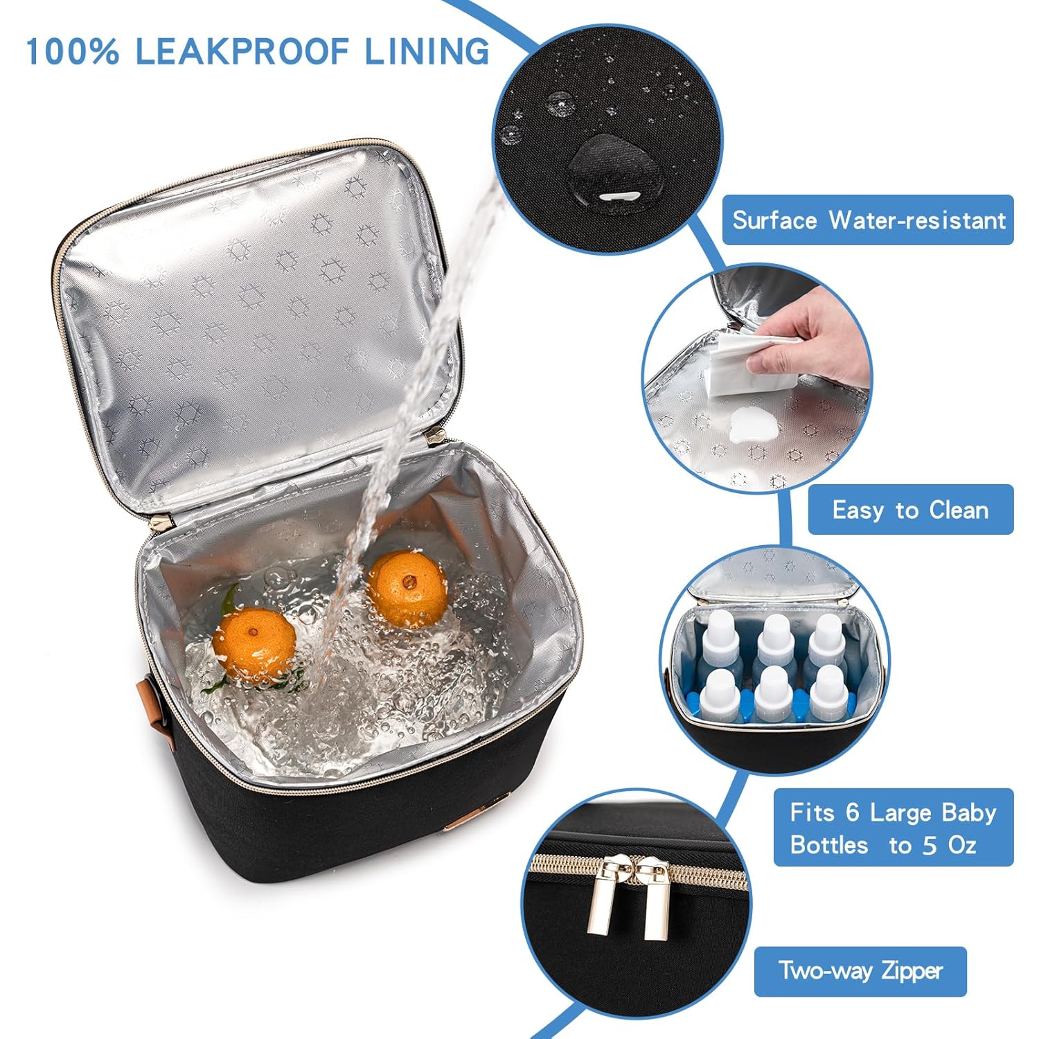 Breastmilk Cooler Bag with Ice Pack Fits 6 Baby Bottles Up to 5 Ounce, Baby Bottle Bag with Shoulder Strap for Nursing Mom Daycare-Black