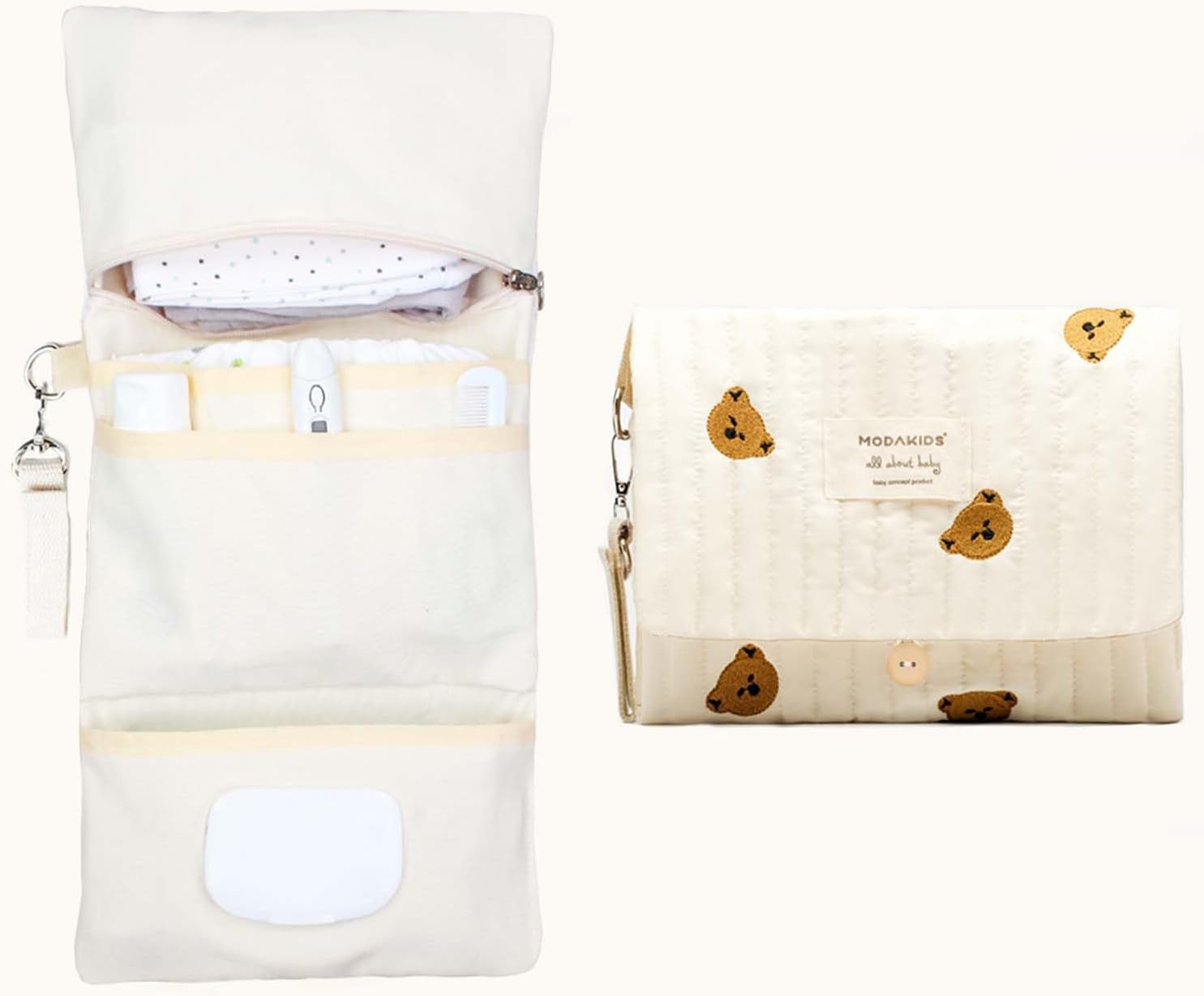 Baby Bag Organizer, Waterproof Mini Diaper Bag, Foldable Mom Travel Set, Diaper Organizer, with Gift for Baby Shower (Bear)