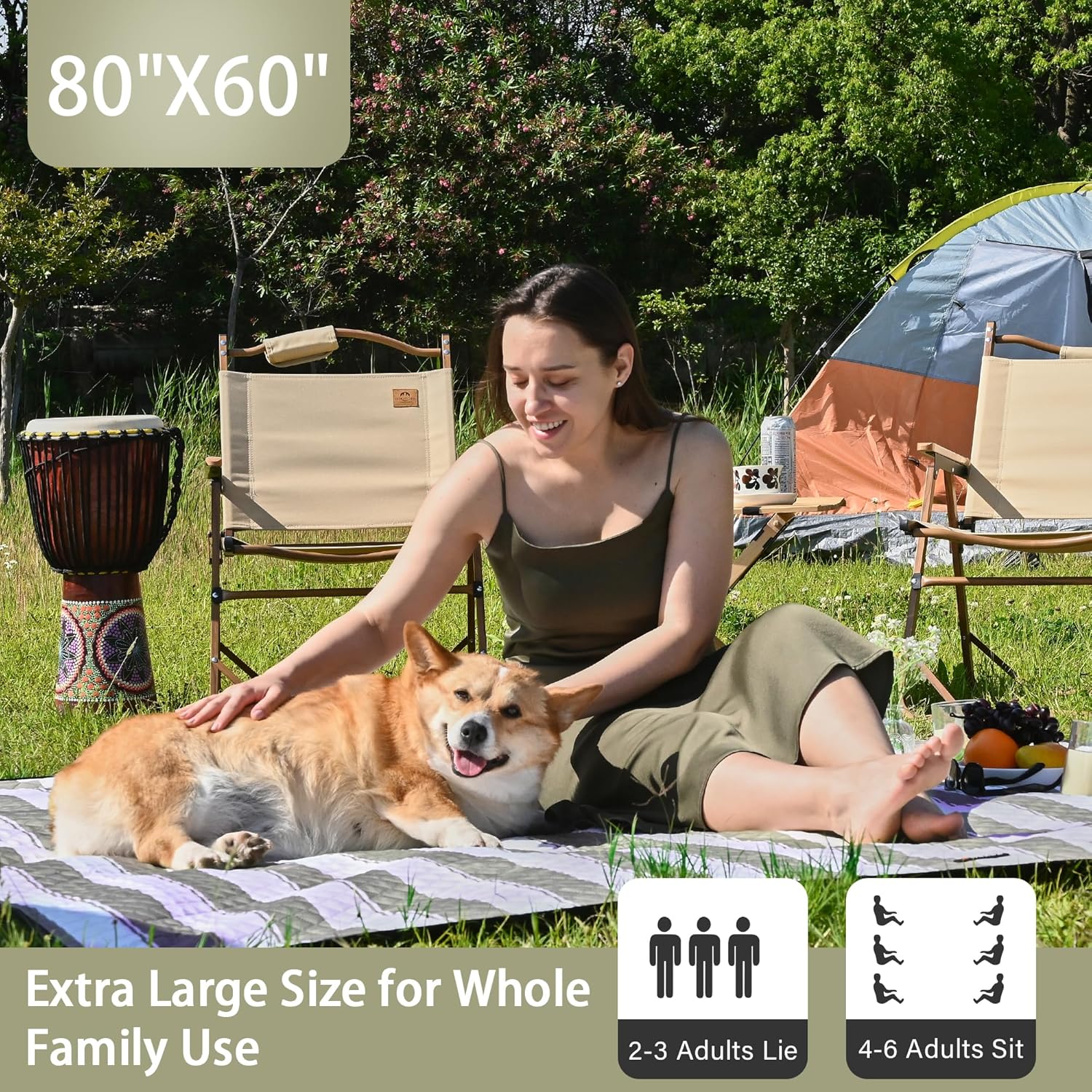 - ☀ 【Large size, Portable & Lightweight】- Our Picnic blankets unfoldedsize is 80''x 60''. It’s large enough to fit for 4-6 adults for siting, giving your children and pets a large area to play. This is a windproof picnic mat. Comes with ground spikes to keep the picnic mat from blowing up. Can be used in all seasons.