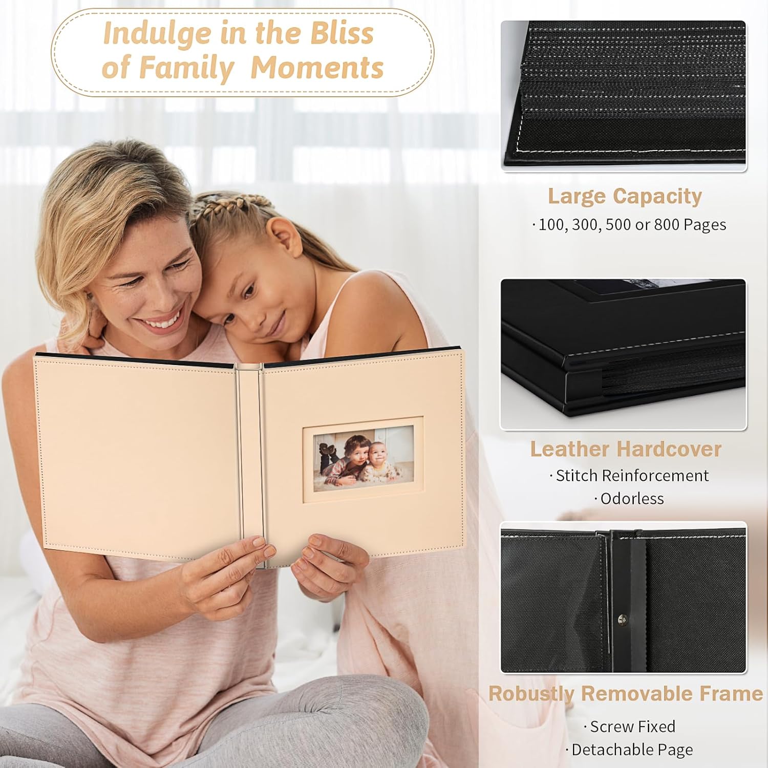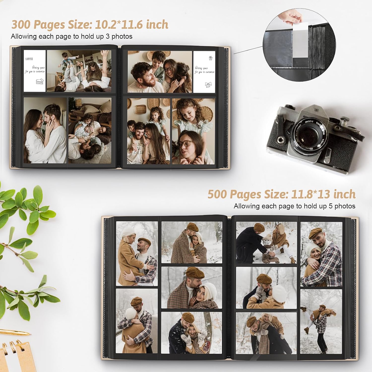 - 🥰Large Capacity: Includes 100Pcs inner sleeves with 800Pcs pockets. The cover size is 13.07 "Lx11.89 "Wx2 "H, the inner photo page size is 12.72 "Lx10.75 "W, each pages can hold 5Pcs 4x6 photos.