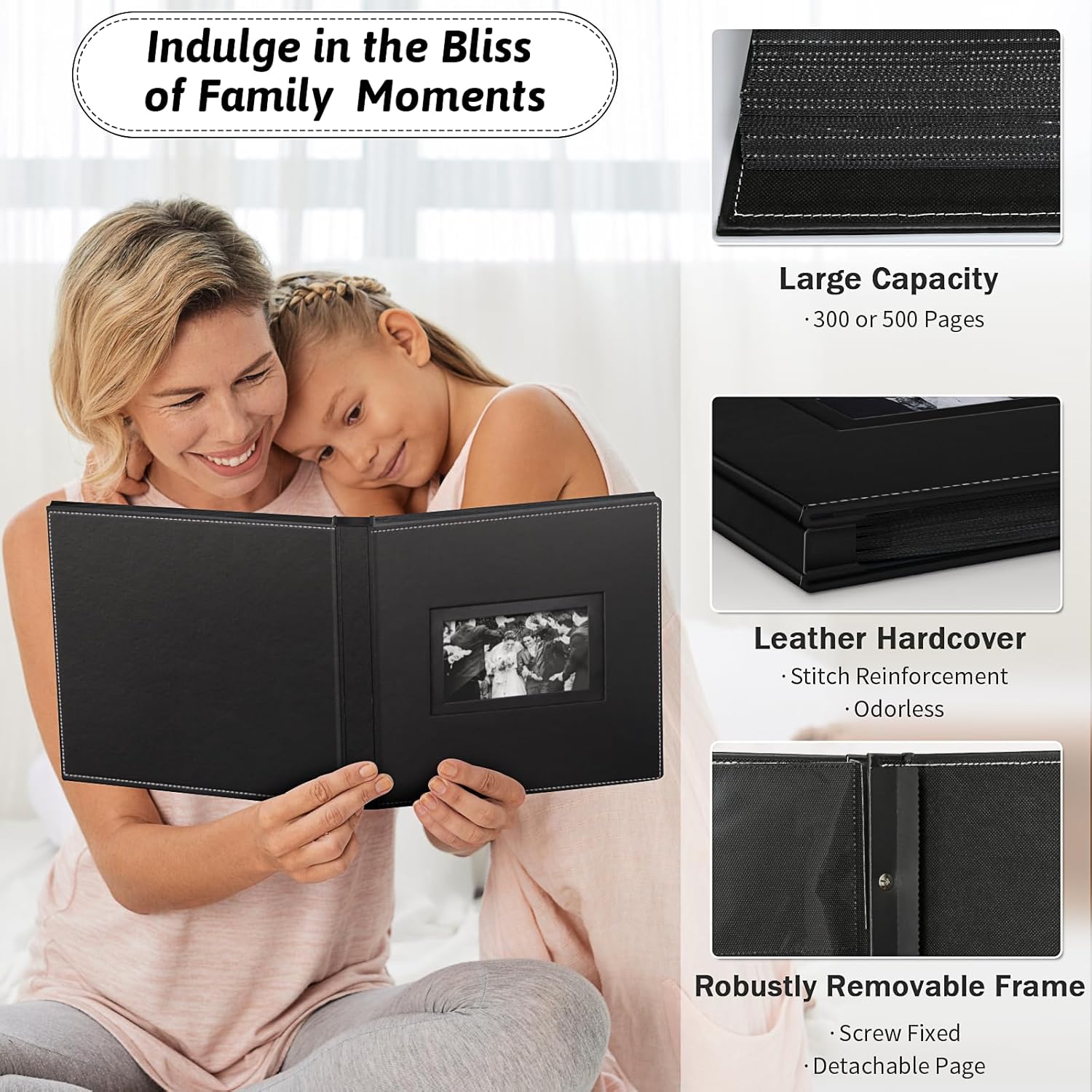 - 🥰Large Capacity: Includes 100Pcs inner sleeves with 800Pcs pockets. The cover size is 13.07 "Lx11.89 "Wx2 "H, the inner photo page size is 12.72 "Lx10.75 "W, each pages can hold 5Pcs 4x6 photos.