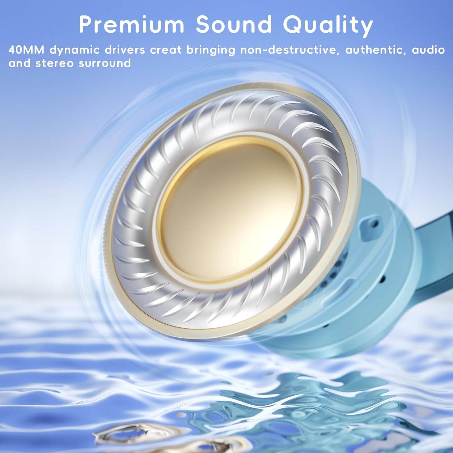 Kids Headphones, Wired Headphones for Kids Over Ear with Microphone, 85/94dB Volume Limiter Headphone for Girls Boys, Foldable Headphone for Learning & Entertainment, Gradient Green