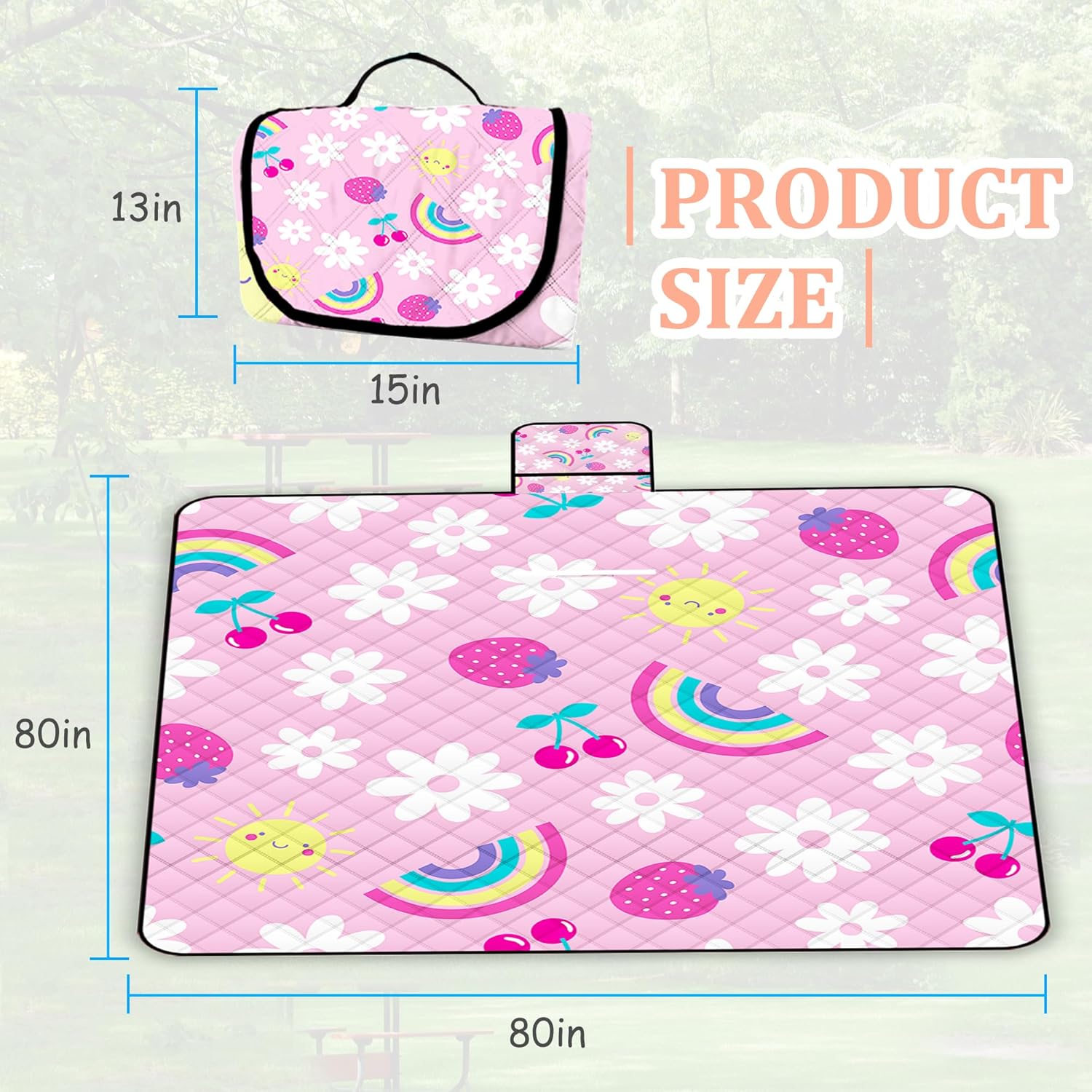 Extra Large Picnic Blanket Waterproof,80"x 80"Foldable Machine Washable Beach Blankets,Outdoor Blanket for 6-8 Adults, Picnic Mat Suitable for Indoor Crawling,Park Beach,Camping,Hiking, Travel(Pink)