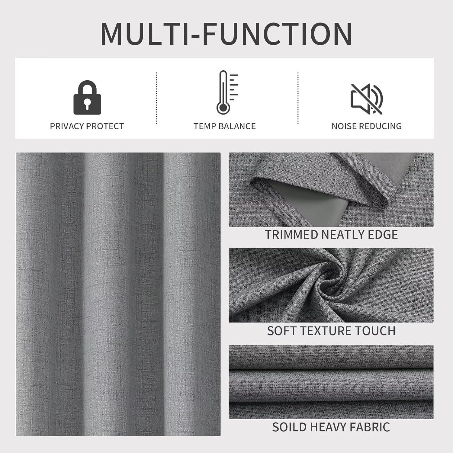 - 【Faux Linen Material】 Bedroom curtains are made of faux linen texture with a very tight workmanship. Blackout shades are not only thick, but also comfortable and drapey. Our curtains provide good noise reduction and protect home privacy well.