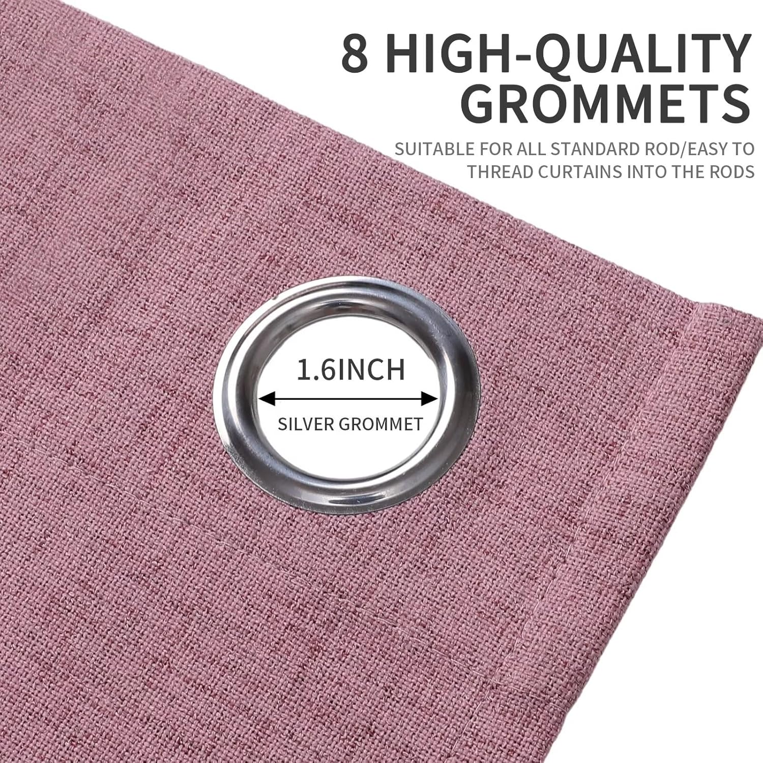 - 【Grommet Design】The curtains are designed with Grommets. Grommet design is a modern and fashionable curtain style suitable for various living and office environments. This design adds a metal ring at the top of the curtain to make it easier to slide and distribute the weight of the curtain fabric evenly.