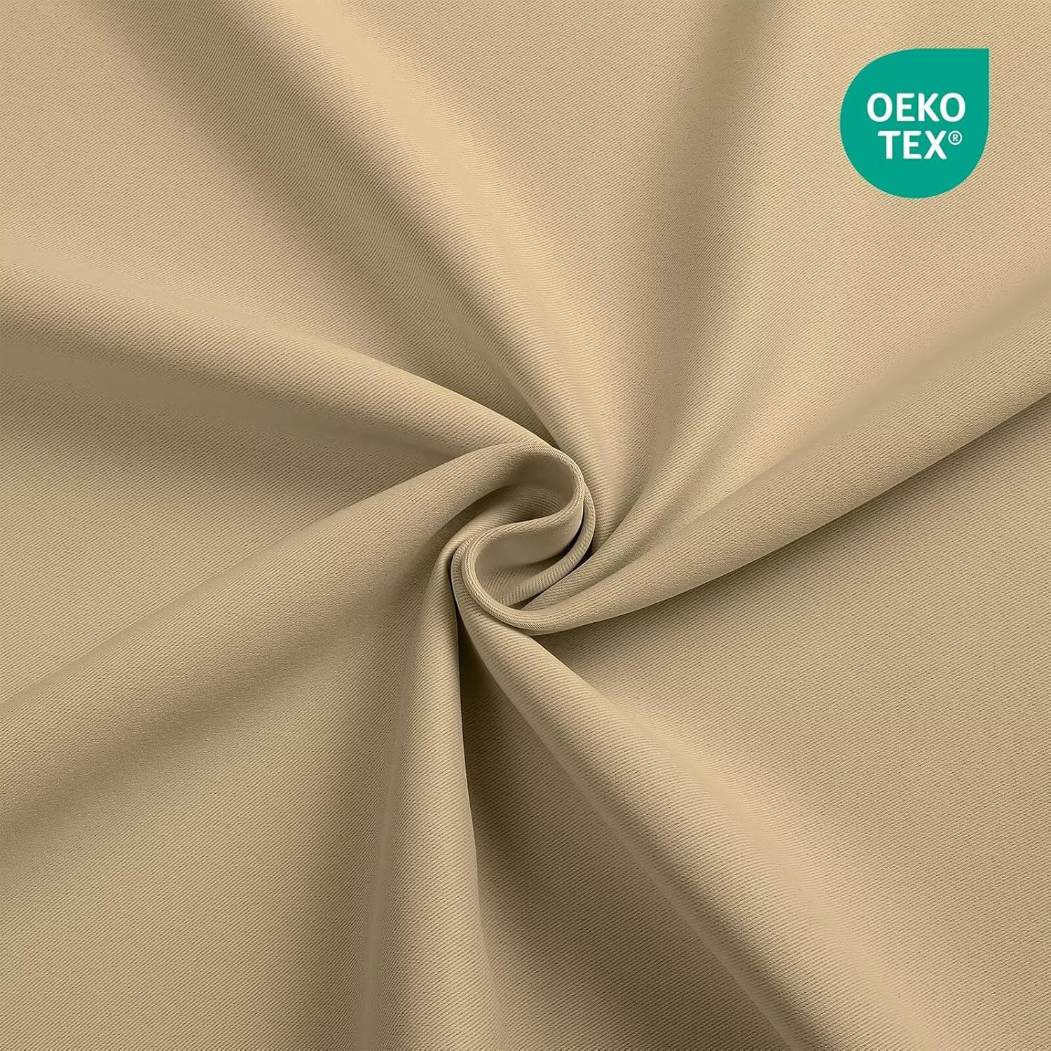 Joydeco 90 Inch Blackout Curtains for Bedroom, Thermal Insulated Black Out Curtains 2 Panels Se, Room Darkening Drapes for Living Room Window Rod Pocket Back Tab (W52 x L90 Inch, Beige)