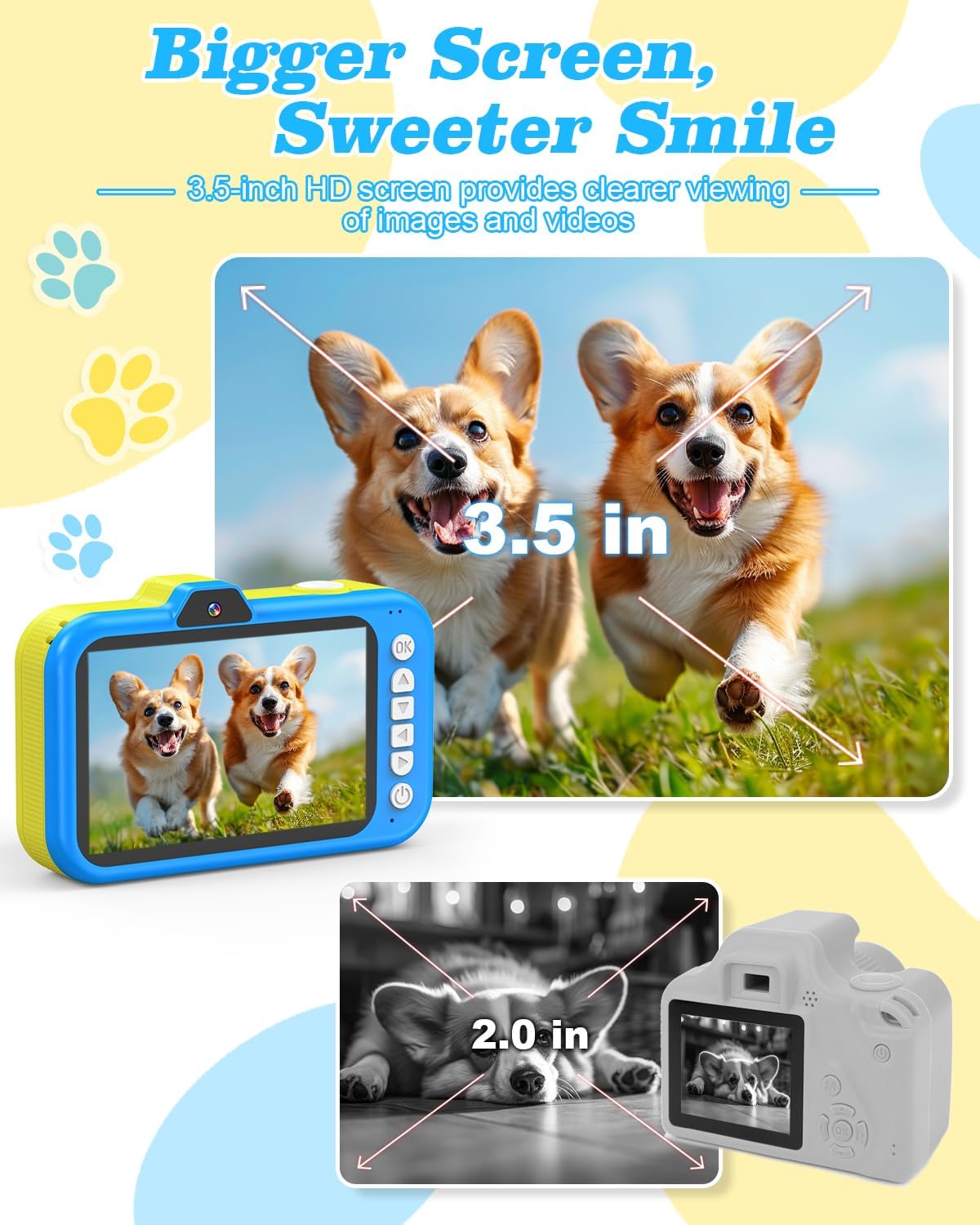 - π₯οΈ BRIGHT 3.5 INCH SCREEN & 10X DIGITAL ZOOM β Large display helps kids preview and review shots clearly; 10X zoom with rotating lens lets them get closer to the action while maintaining image clarity