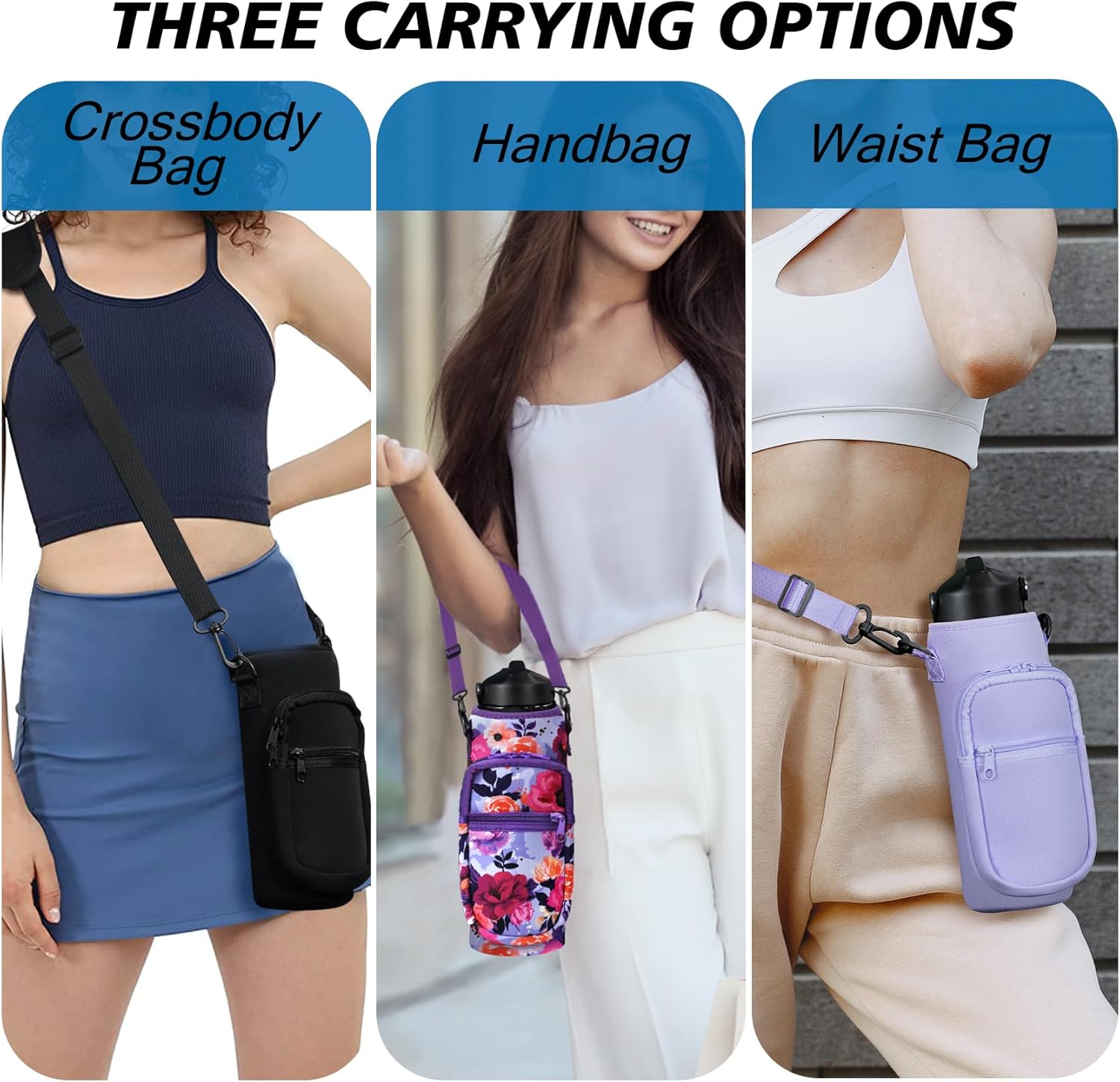 - Large Capacity: The water bottle sleeve specially designed to be compatible with sport bottles and vacuum stainless steel bottles, ranging from 16 oz to 40 oz, like Hydro Flask, Iron Flask, Contigo and other brands. The drawstring makes it easy to insert and remove the bottle, ensures it will not fall out of the holder.