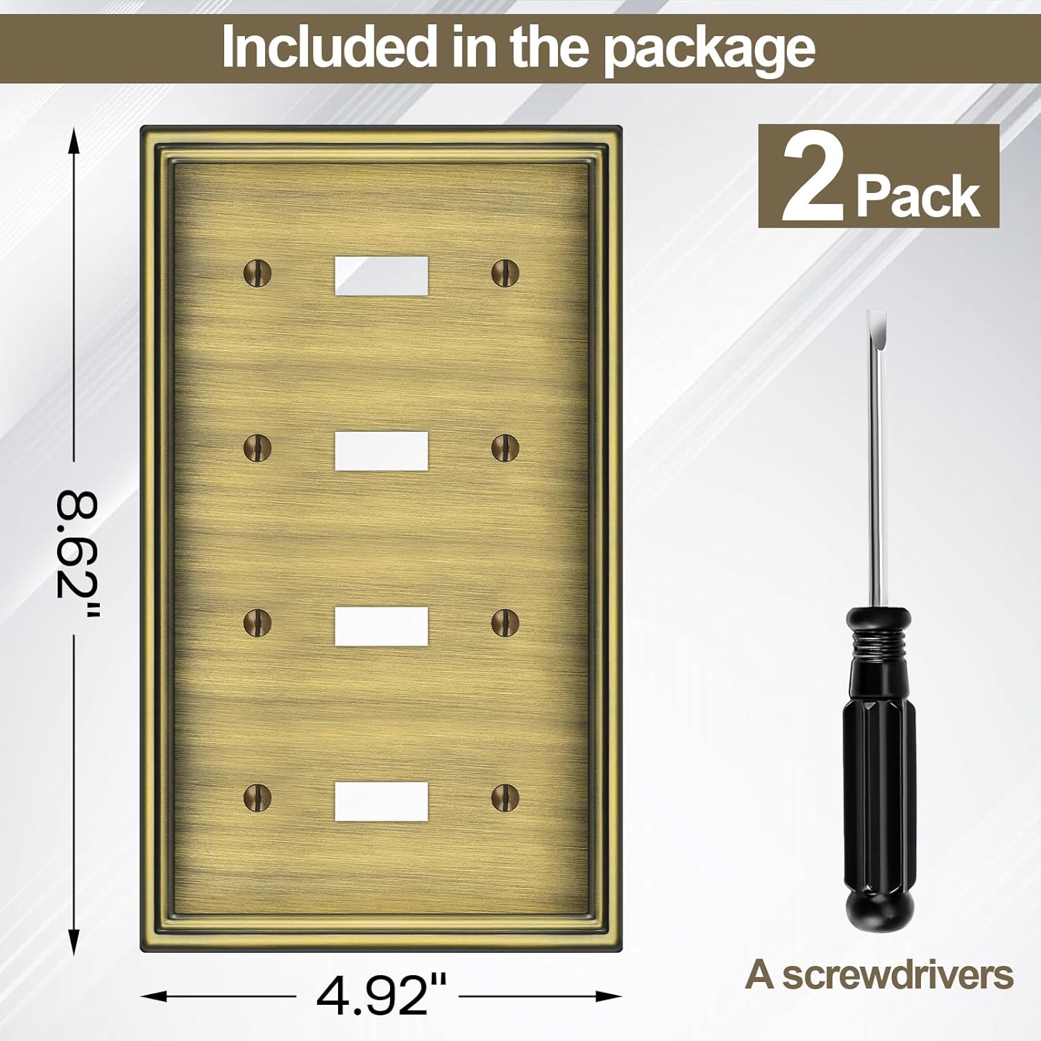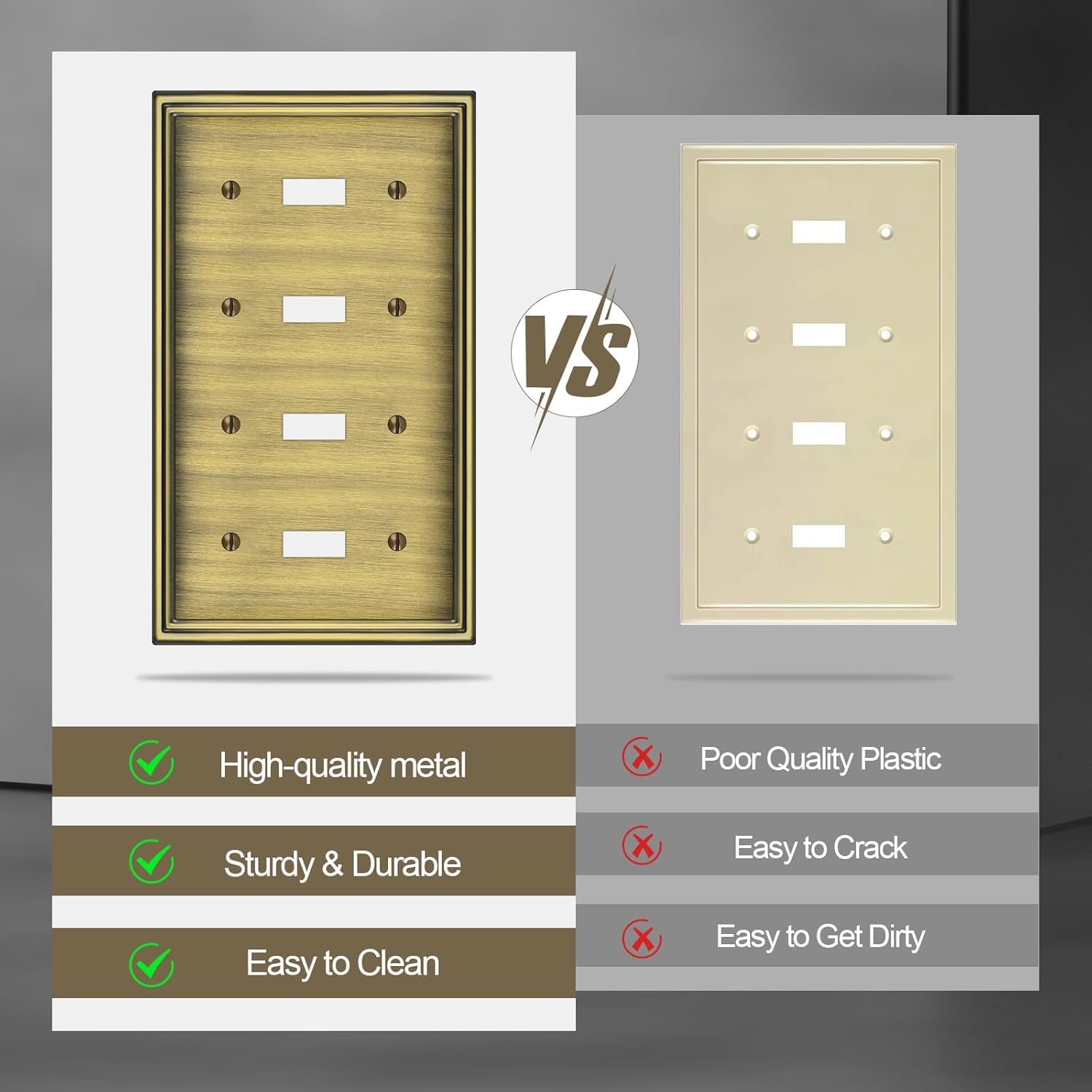 - 【Good Surface Finish】Wall plates surface using electroplating process, which will form an extra layer of dense metal on the surface of the original metal material. It makes the surface smoother and the color more uniform, and the plating has strong adhesion, not easy to fall off and aging, effectively extending the service life of the metal.