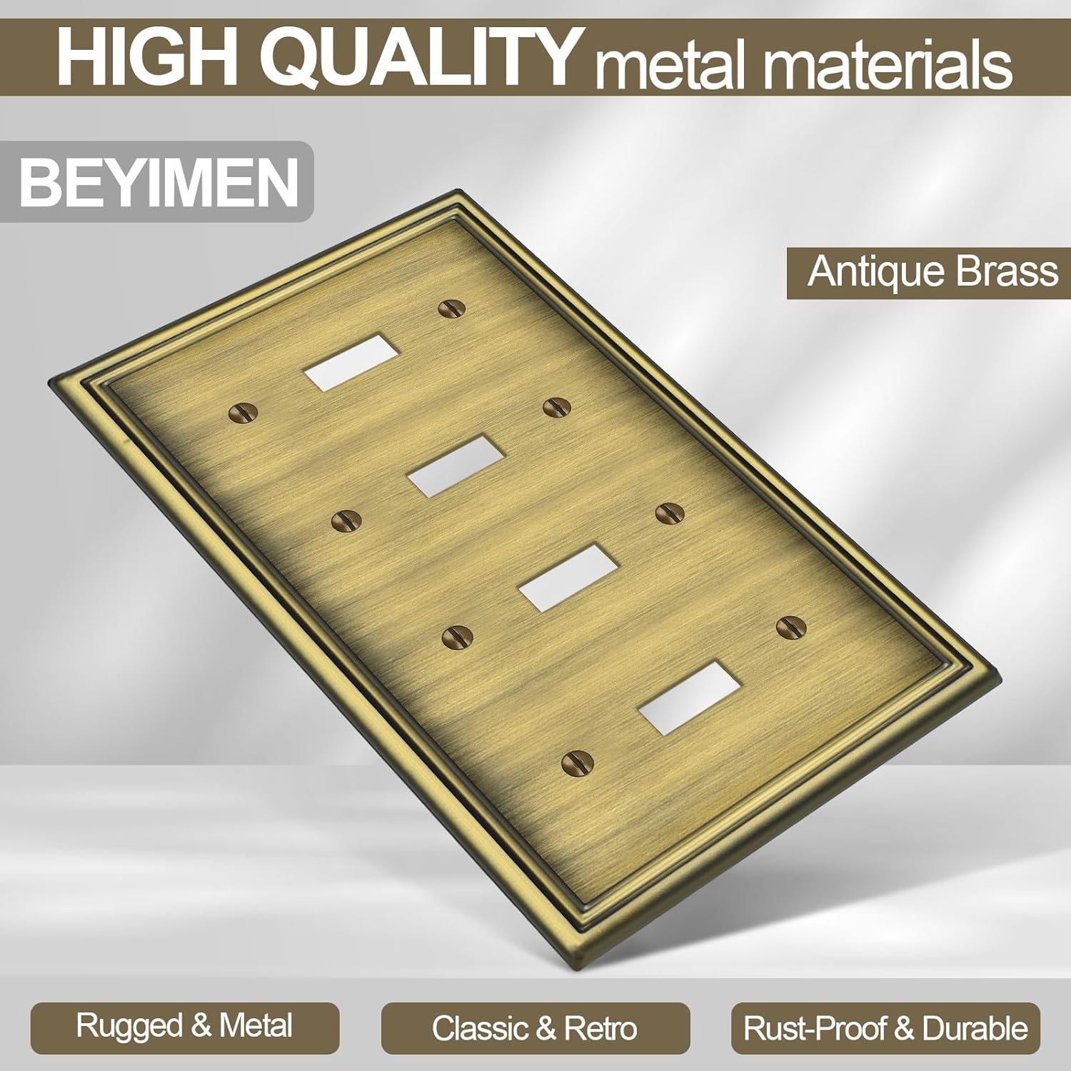 2 Pack Quad Toggle Light Switch Covers Plate, Antique Brass Metal Material Switch Plate Covers, 4 Gang Wall Plate for Light Switch - Classic Style