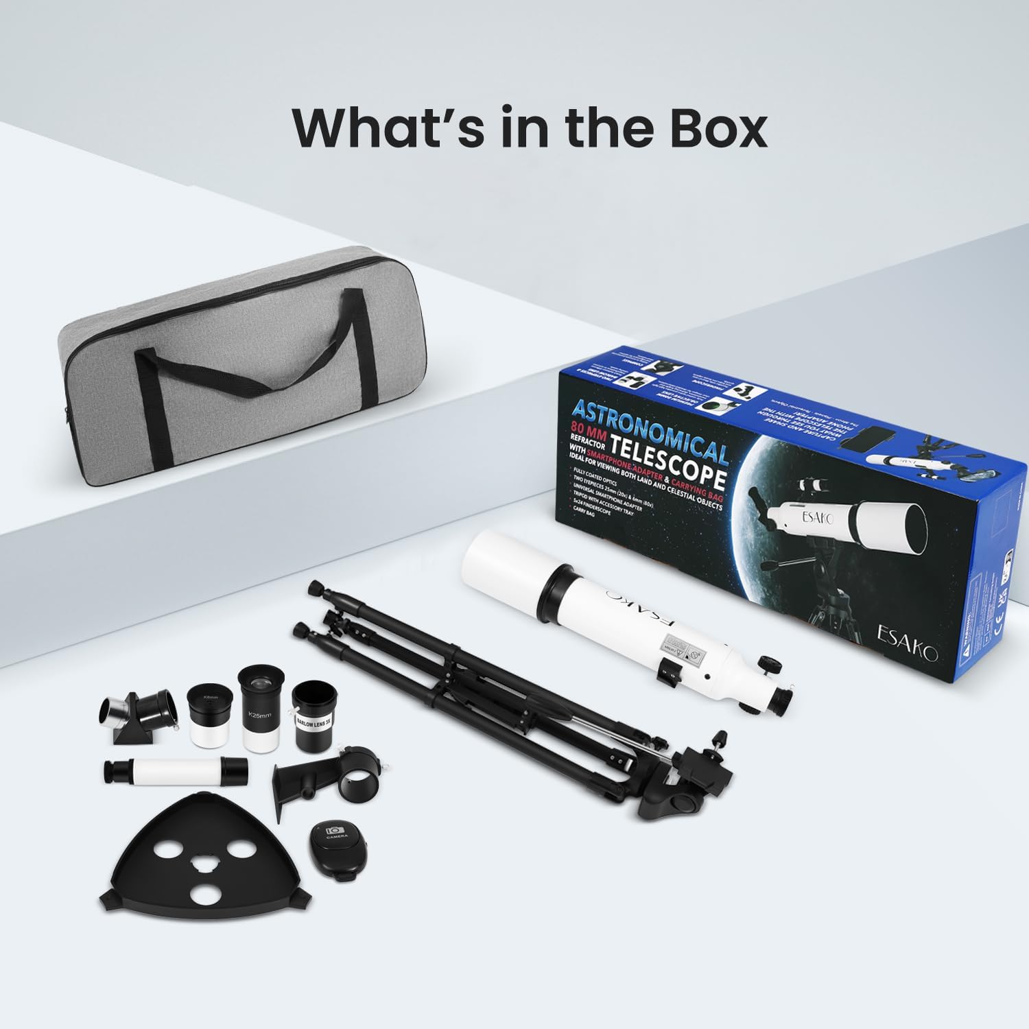 ESAKO Telescope for Adults & Kids, Astronomical Portable 80mm Aperture Beginners Telescope with Phone Adapter, Wireless Remote & Carry Bag
