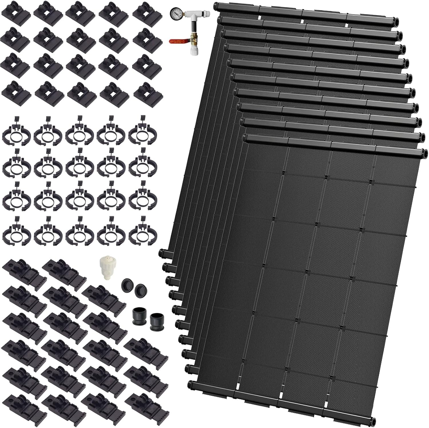 Industrial Grade Solar Pool Heater DIY Kit - Superior High-Wind Strapless Mounting System & Maximum Freeze Resistance (10-4'x6.5' / 260 Square Feet)