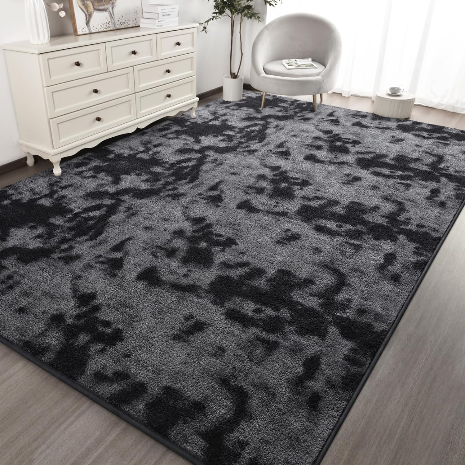 - [Modern Minimalist Home Decor]Tie-Dyed dark gray floor rug fits any room decoration. Minimalist style, abstract tie-dye colors and modern funky appearance bring you a cozy and luxury home experience, which is widely applicable to living room, bedroom, dorm, dinning room, office and nursery room