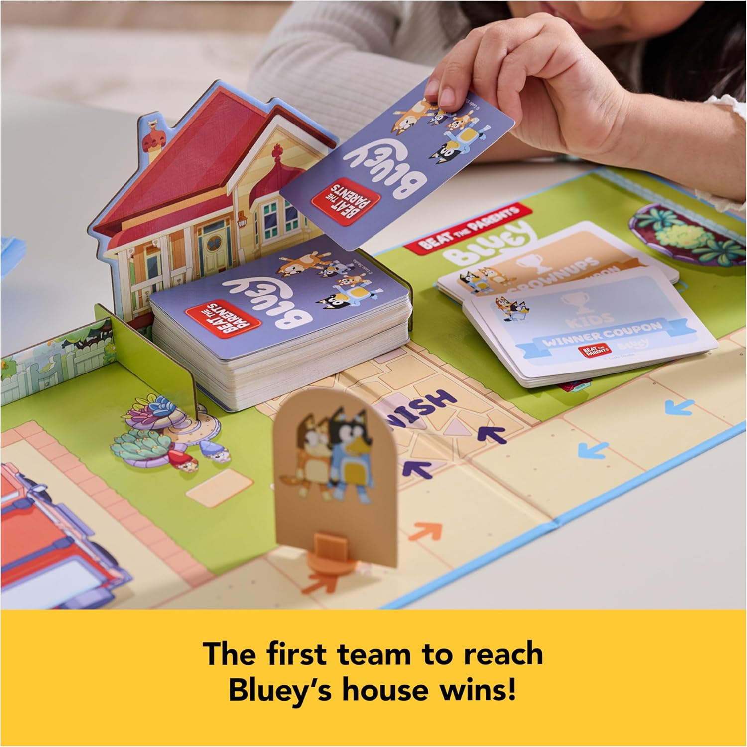- Reach Bluey’s House To Win: Kids & parents of all ages will have a ton of fun answering tricky questions & completing silly games in this fun-filled Bluey family game. For 2-6 players, ages 5+