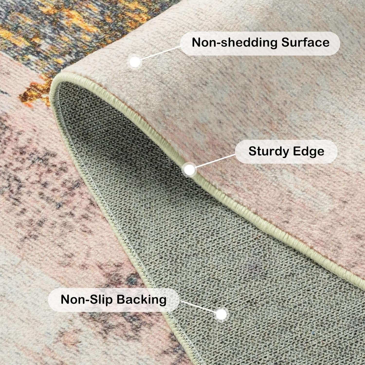 - Skid Resistant Backing:With an anti-slip backing, our living room rug ensure safety in your home by staying securely in place in high-traffic ares. This backing serves as a reliable foundation for frequently used areas such as the living room; dining room; kitchen; and hallways. Even if running on it quickly, it not moves and slides around
