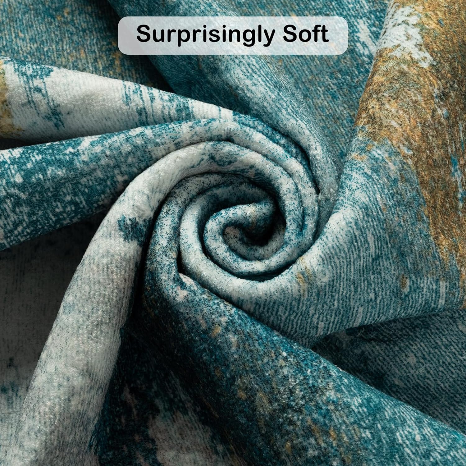 Kelarea 5x7 Blue Rugs for Living Room, Washable Non-Slip Large Rug Abstract Stain Resistant Carpet, Low Pile Soft Indoor Rug for Bedroom, Dining Room, Nursery, Kitchen, Home Office
