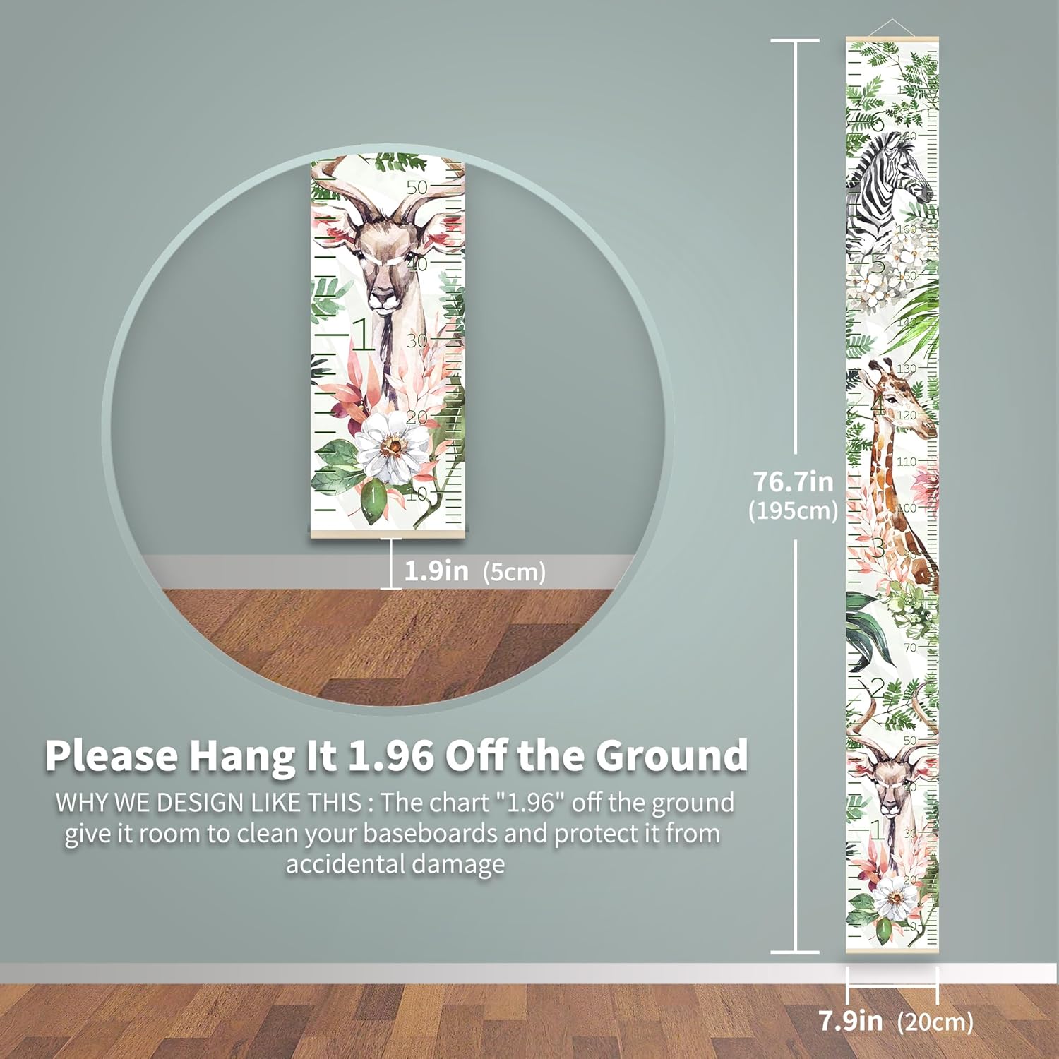 - Over Ground Design: Please hang it 1.96 in/5 cm off the ground, will not interfere in floor cleaning.We are committed to provide a good shopping experience to customers, please let us know if there is any quality problem with the child height wall chart
