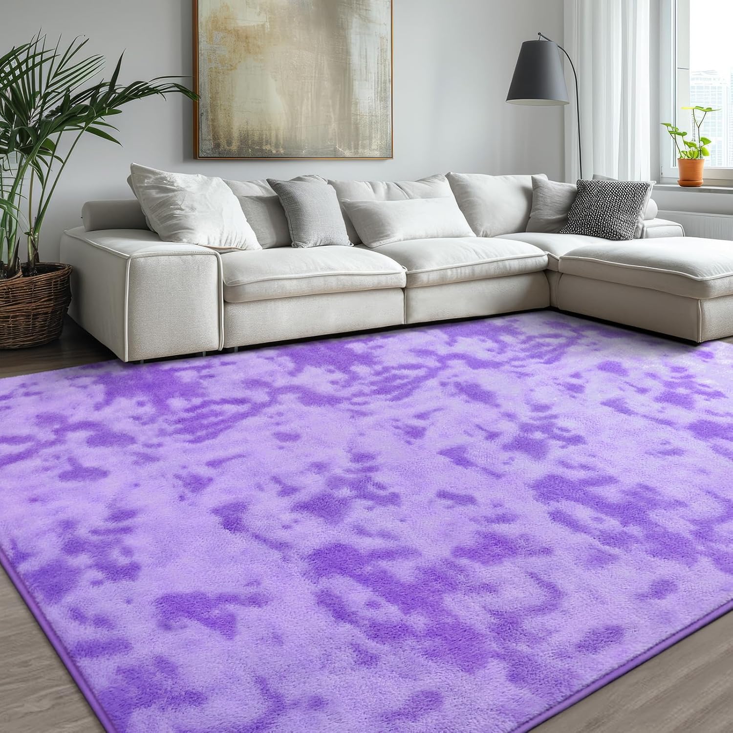 - [Modern Minimalist Home Decor]Tie-Dyed purple floor rug fits any room decoration. Minimalist style, abstract tie-dye colors and modern funky appearance bring you a cozy and luxury home experience, which is widely applicable to living room, bedroom, dorm, dinning room, office and nursery room