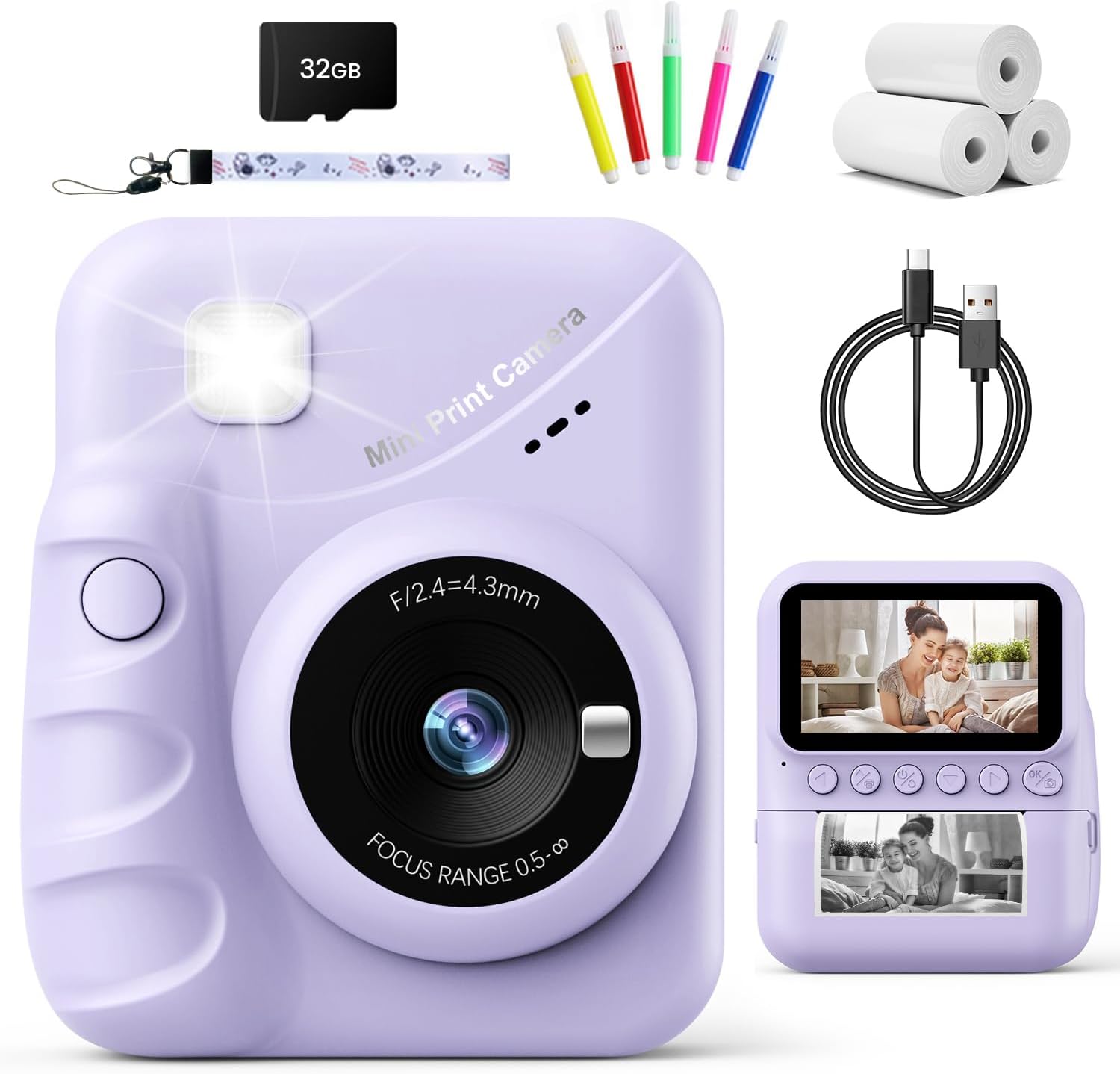 Kids Camera Instant Print for Girls Ages 3-14, 3-inch HD Screen Camera for Kids with Printing Paper, 1080P Digital Toddler Toys for 4 5 6 7 8 9 10 11 12 Years Old (Purple)