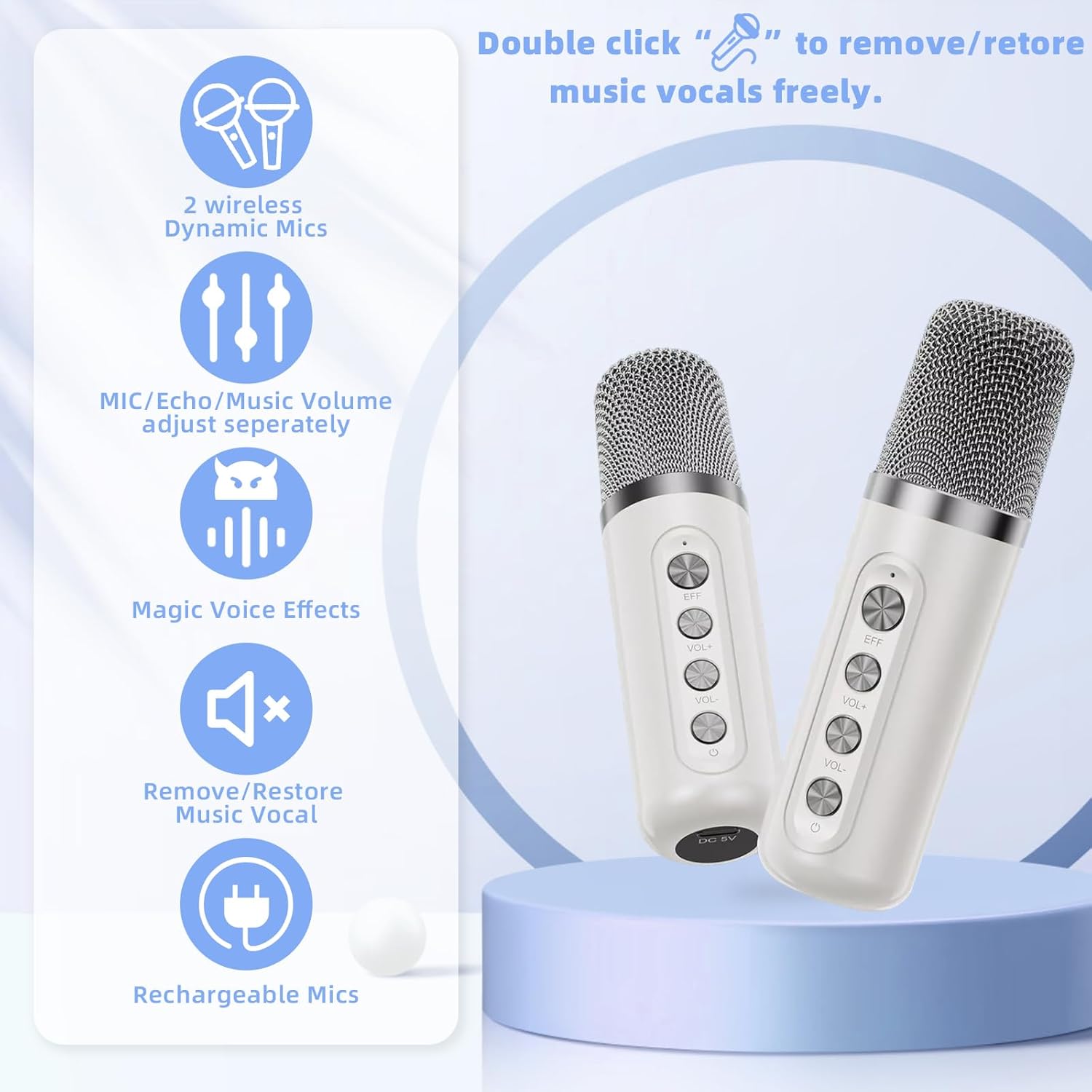 Karaoke Machine for Kids Adults - Portable Bluetooth Speaker with 2 Wireless Microphones, Singing Machine for Party, Birthday Gifts for Girls Boys Ages 4, 5, 6, 7, 8, 9, 10, 11, 12+ Years Old