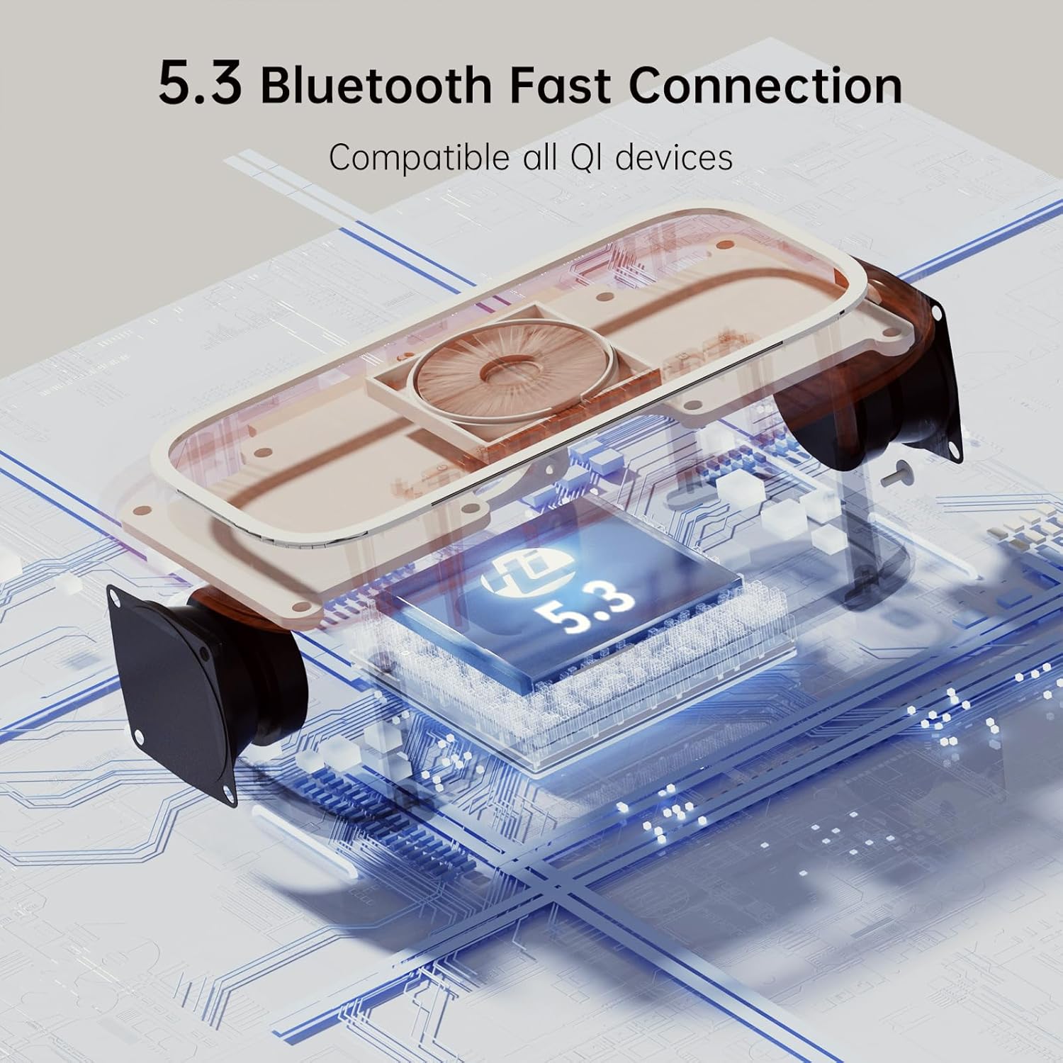 LOVME Alarm Clock Bluetooth Speaker for Bedroom, Bluetooth Stereo Sound Speaker, Fast 15W Wireless Charger, Dimmer, Night Light for Heavy Sleepers, Gift Set, Bedside(Khaki)