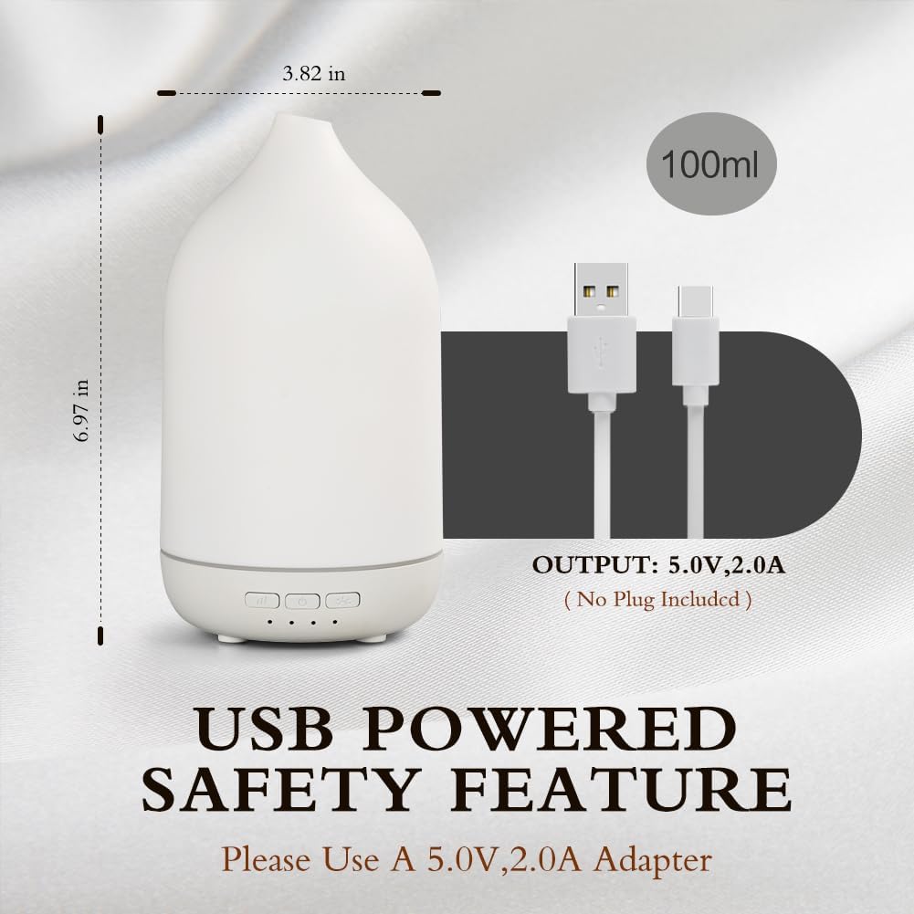 - CRAFTED FROM DURABLE BPA-FREE PLASTIC - This 100ml diffuser is easy to clean, refill, and portable. Its simple one-button control manages timer settings and light options, making it a user-friendly and low-maintenance choice for daily aromatherapy at home, work, or even while traveling.