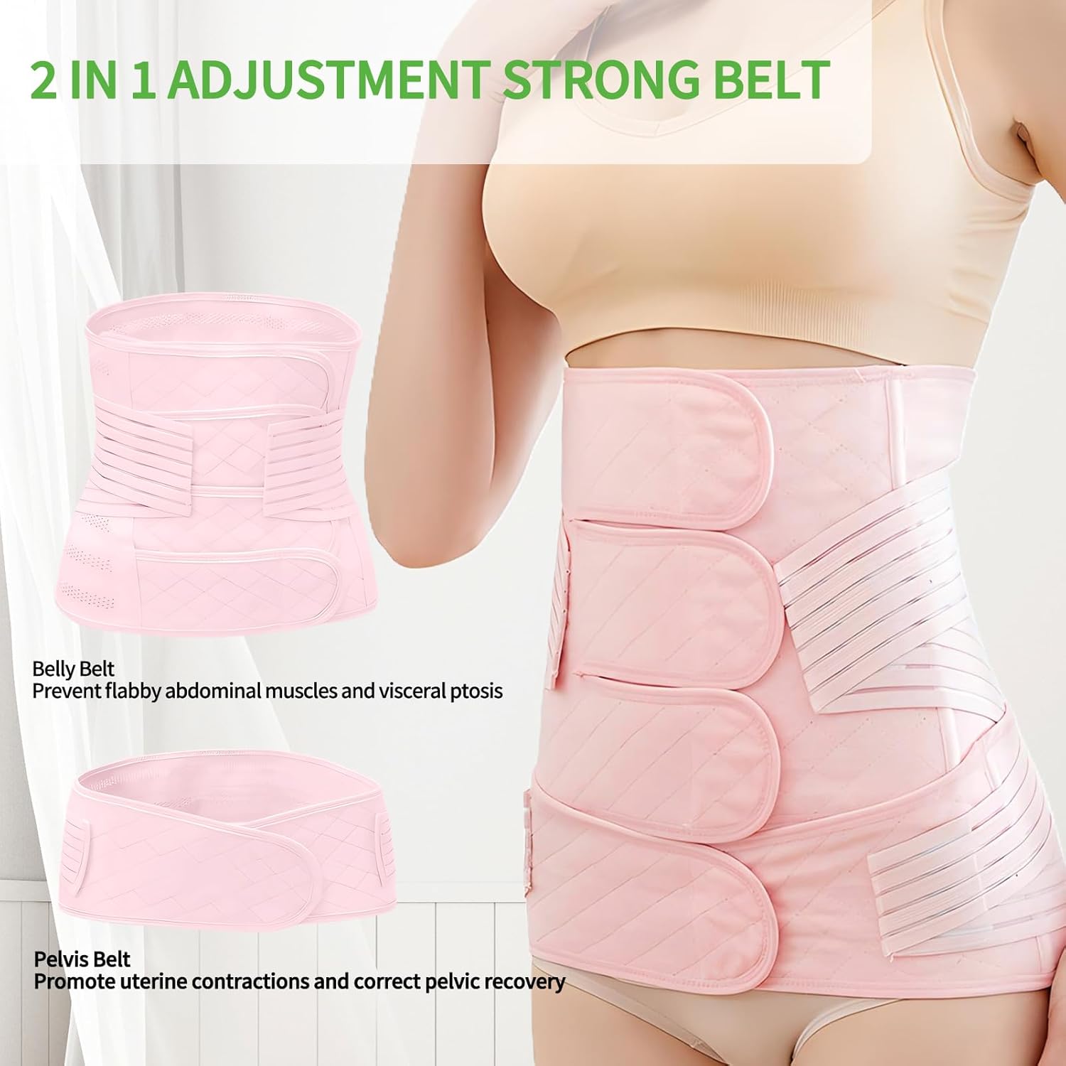 2 in 1 Postpartum Belly Band Wrap Pink, C-Section Support Belt XX-Large, Post Partum Support Recovery Waist/Pelvis Belt, Hysterectomy Belly Band Binder Girdle Stomach