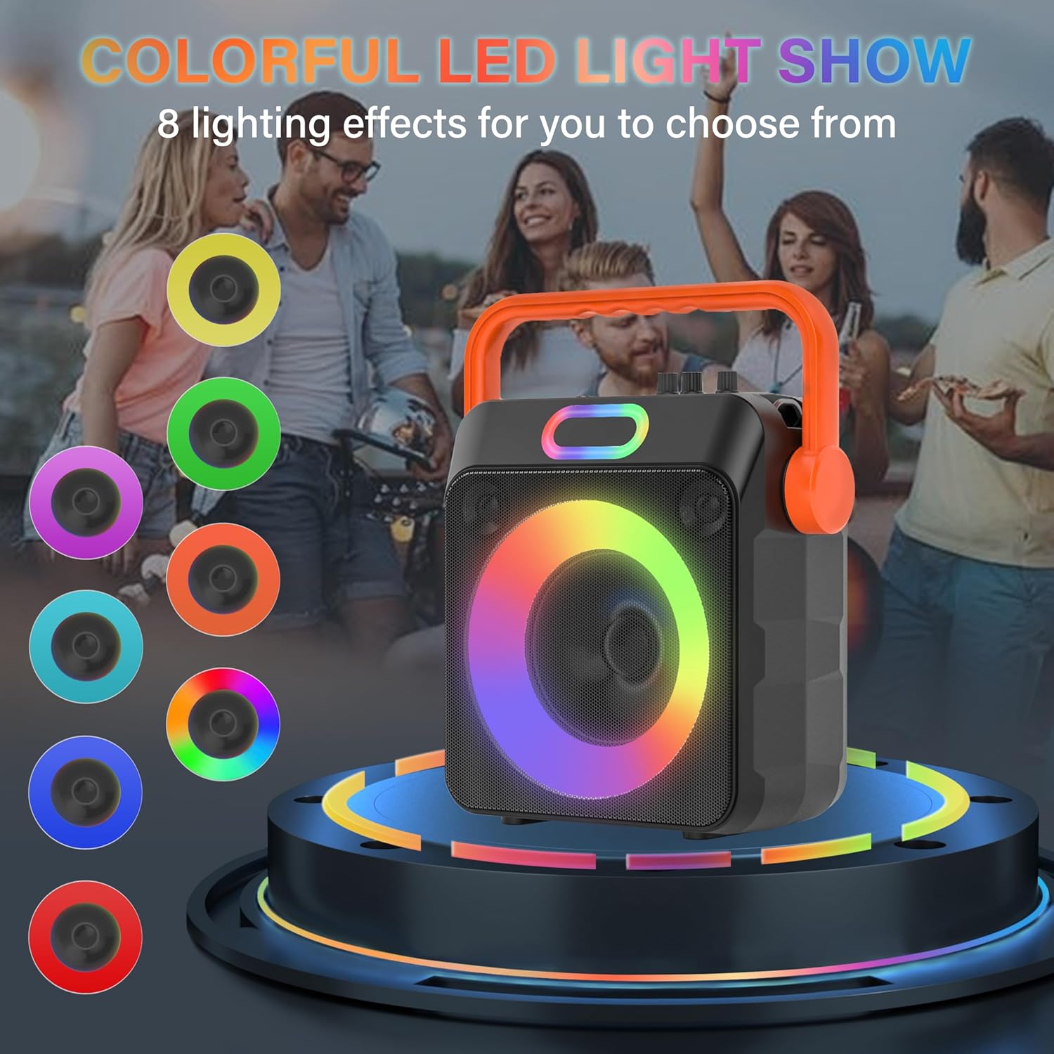 - 【8 Color Disco Light Mode】The karaoke machine is equipped with 8 modes of colorful RGB lights and a variety of lighting effects, allowing you to freely switch between different colors of lights, which will move with the beat of the song, charming and romantic, allowing you to immerse yourself in the colorful music light show, which is very suitable for family parties, Christmas performances, and various outdoor or indoor party activities