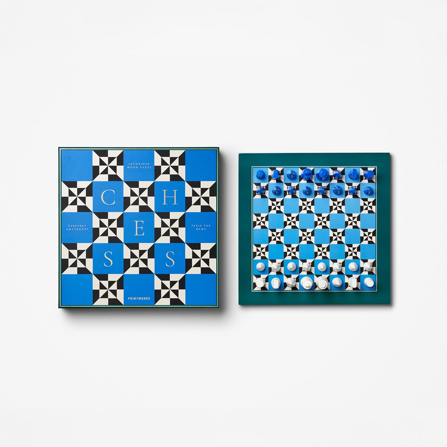 Lacquered Chess – Poseidon – Multi-Color Wooden Chess Set with Solid Wood Board – Elegant Coffee Table Game for Adults & Kids Ages 5+ – Multilingual Instructions Included