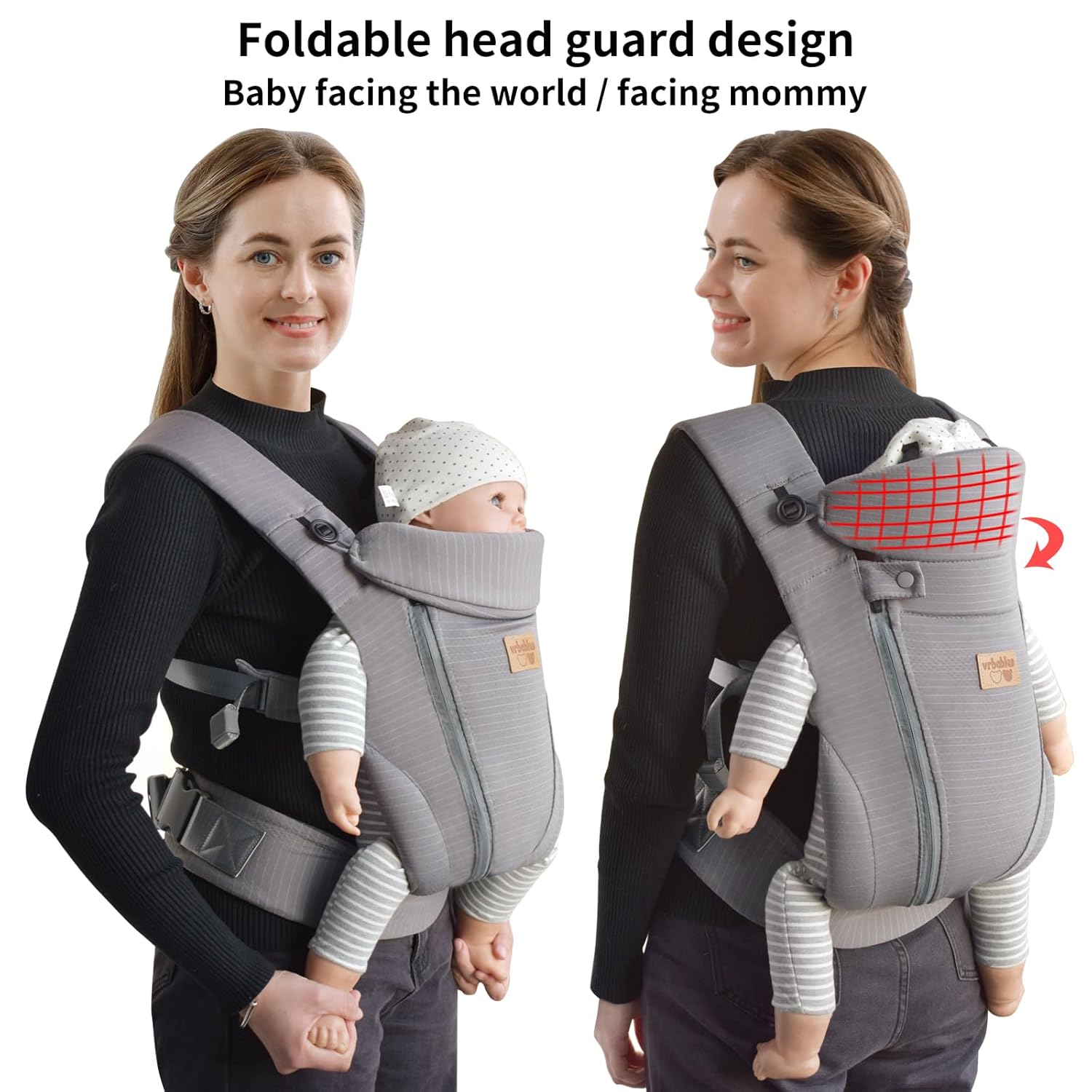 - Adjustable Sling Carrier: Adjustable baby carrier with secure buckle design fits most caregivers and offers 3 carrying positions (front-inward, front-outward & back carry), featuring breathable fabric and no-retie buckles for comfortable babywearing from newborn (8 lbs) to toddler (35 lbs).