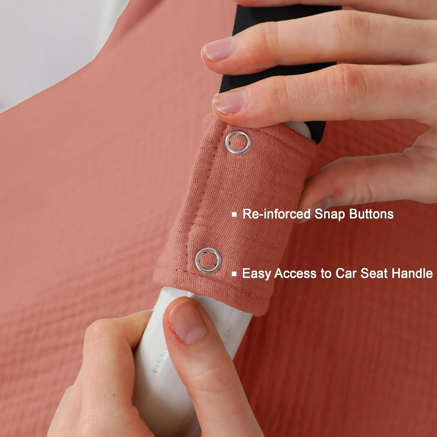 100% Muslin Cotton Car Seat Cover Baby, Carseat Canopy Cover, Universal Fit Stroller Covers for Boys and Girls (Blush)
